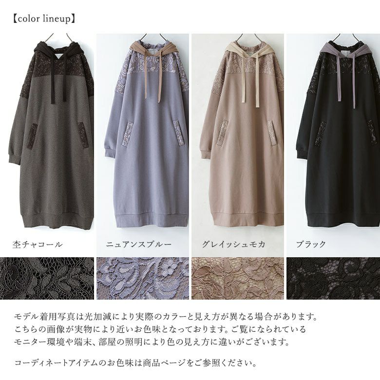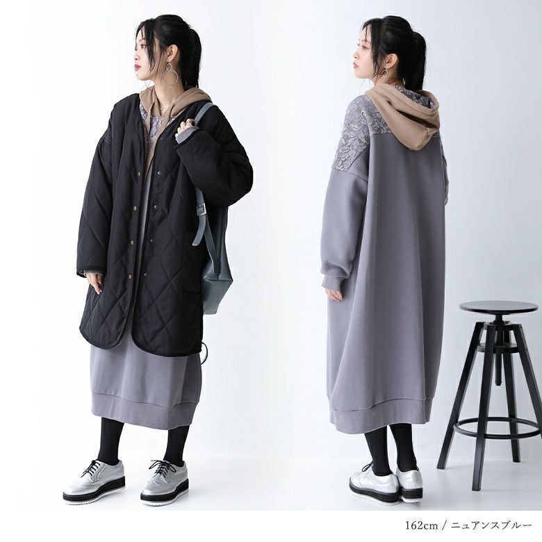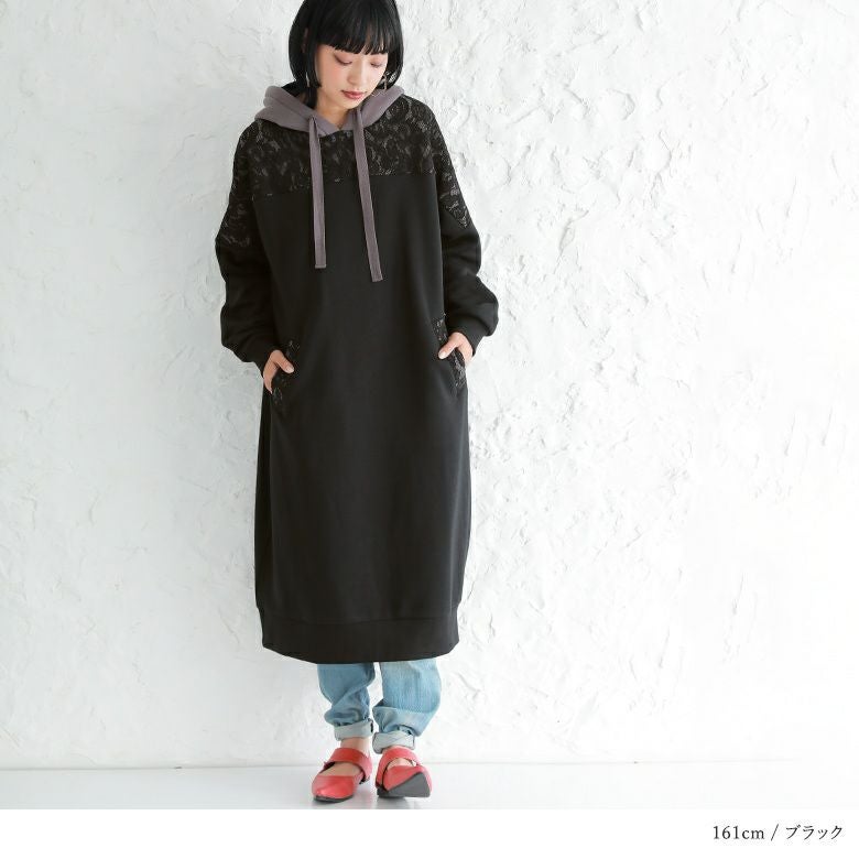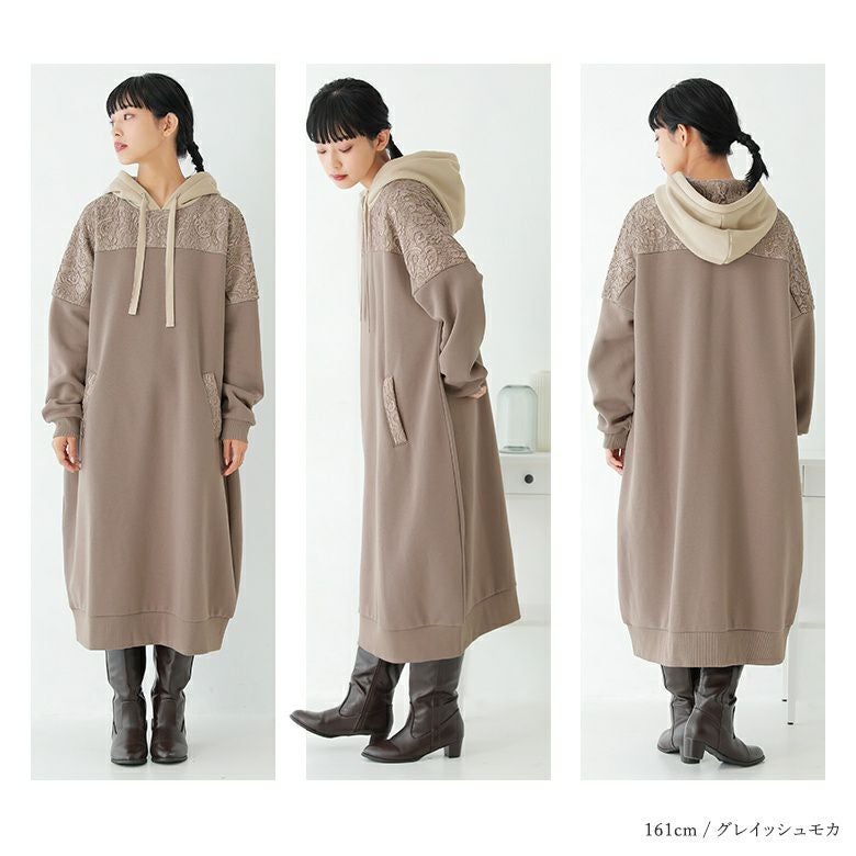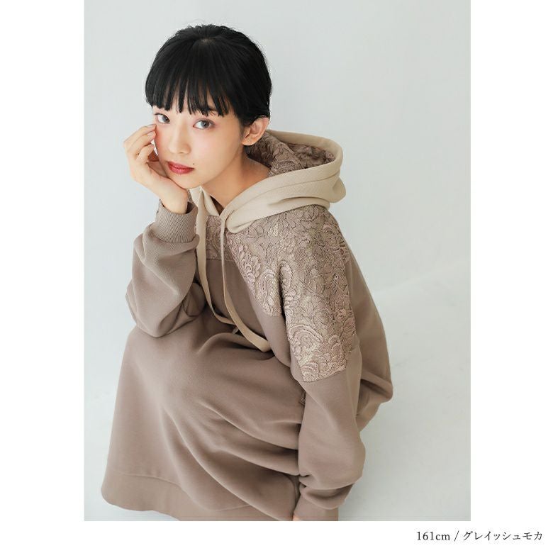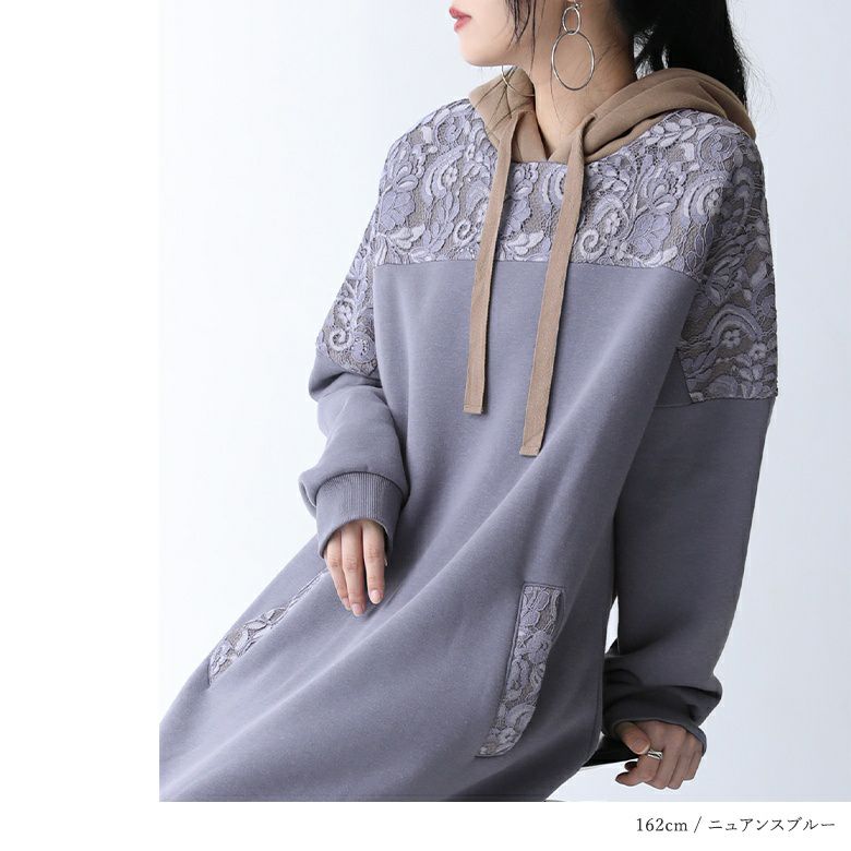 センスを格上げする、繊細レース&大人め配色パーカーワンピース♪