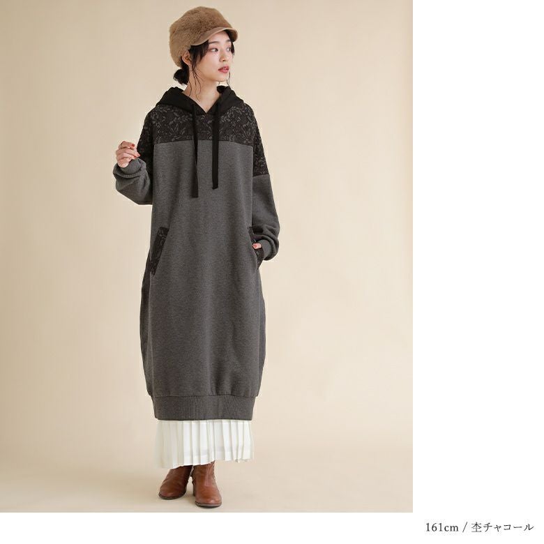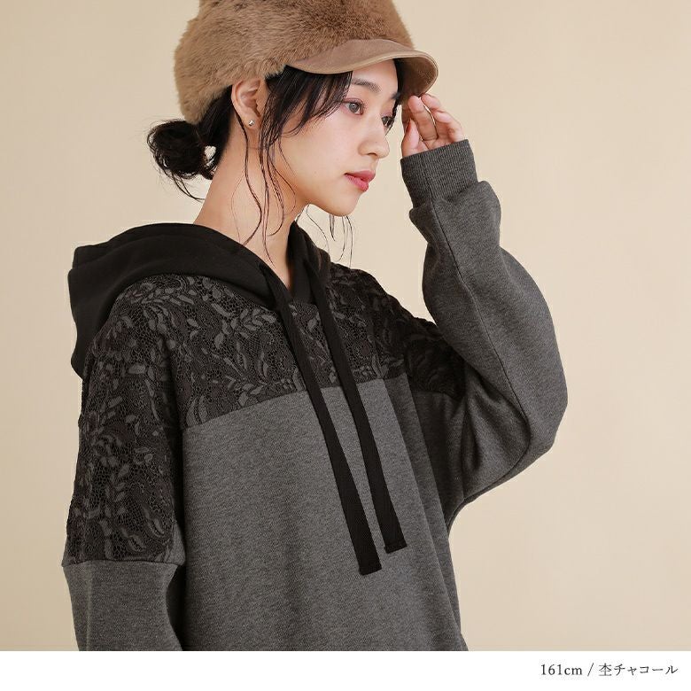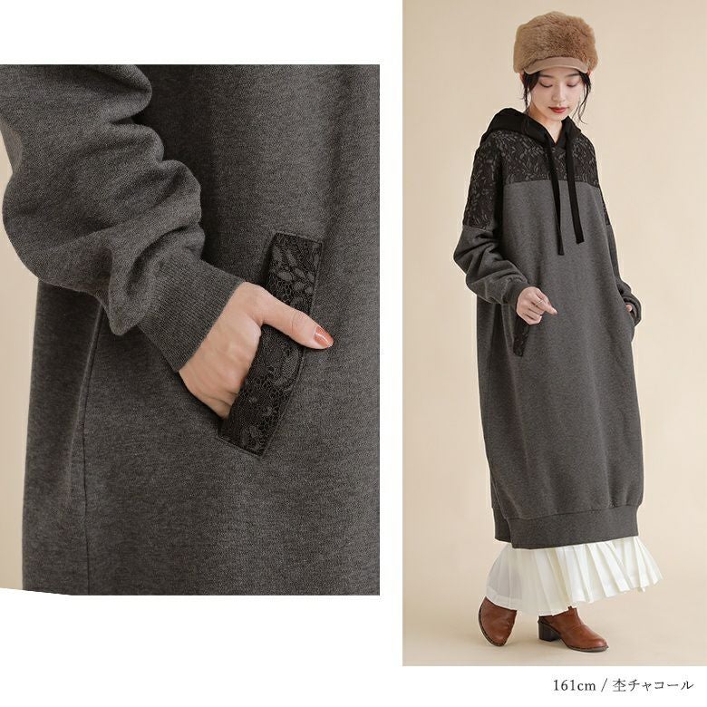 華やかレースの裏起毛パーカーワンピ♪