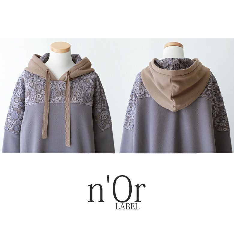 『n'OrLABEL裏起毛レースパーカーワンピース』