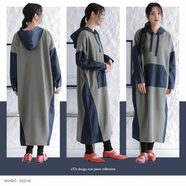 お洒落に魅せる≪n'OrLABEL≫デニム切り替え配色パーカーワンピースです。