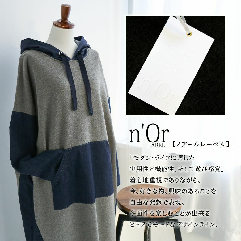 『n'OrLABELデニム切り替え配色パーカーワンピース』