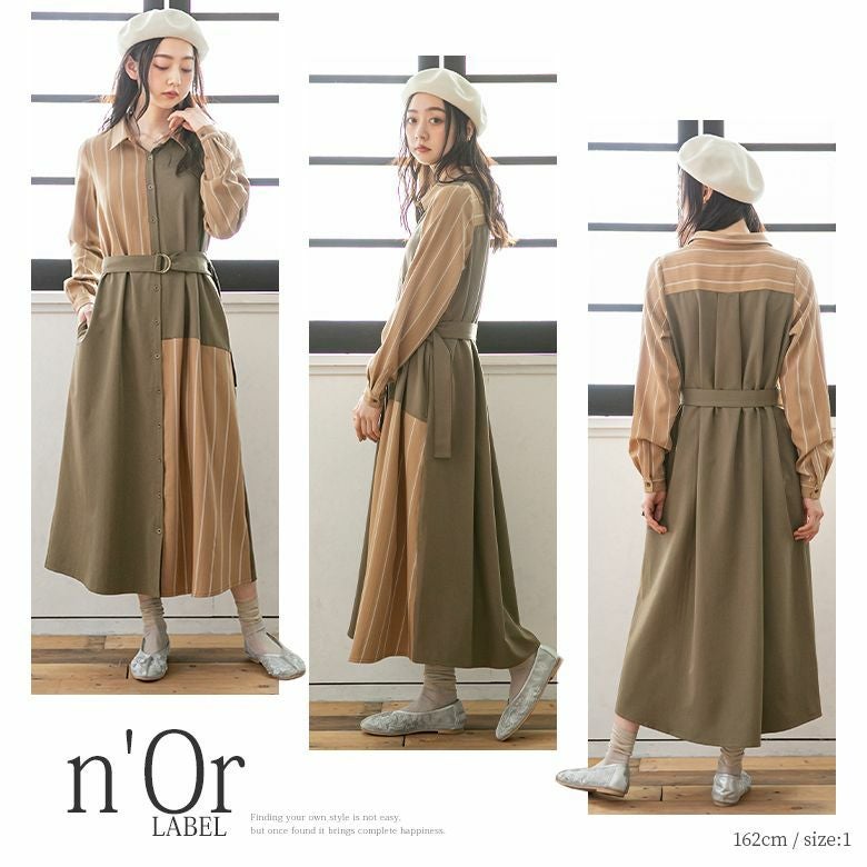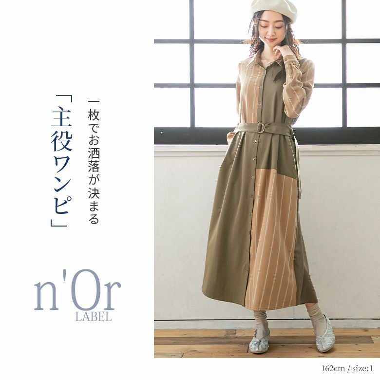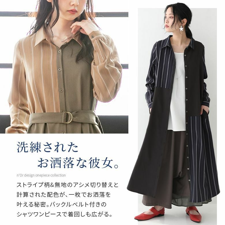 この一枚で大人の魅力が完成する≪n'OrLABEL≫ストライプアシメ切替シャツワンピースです。