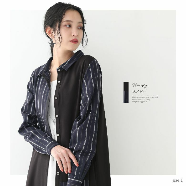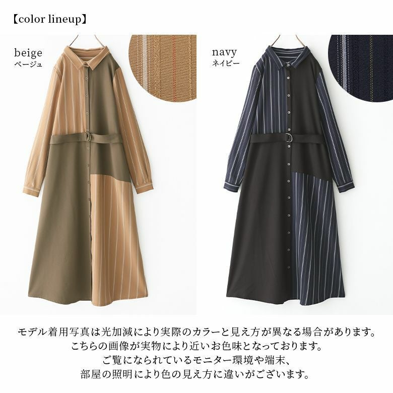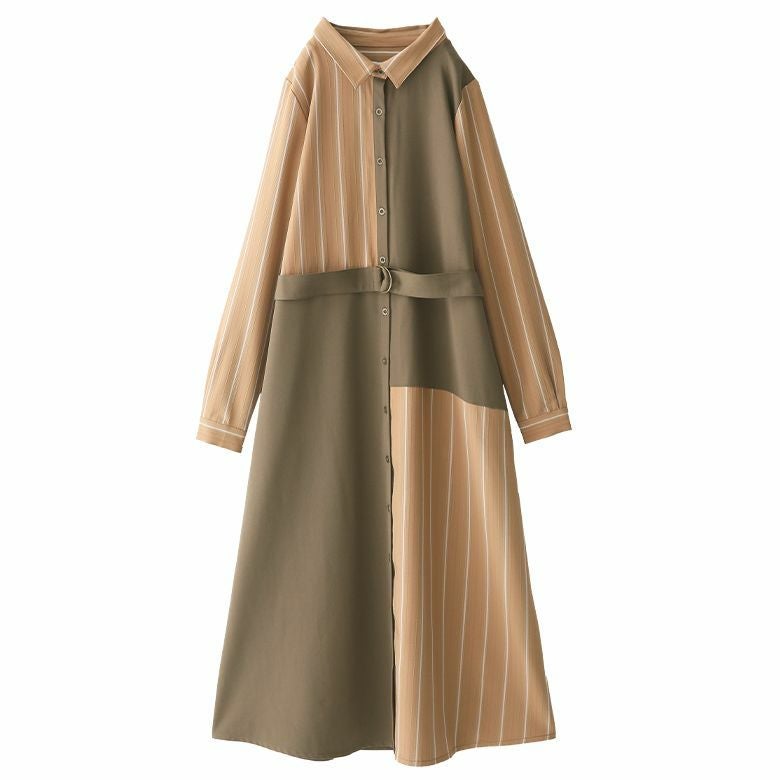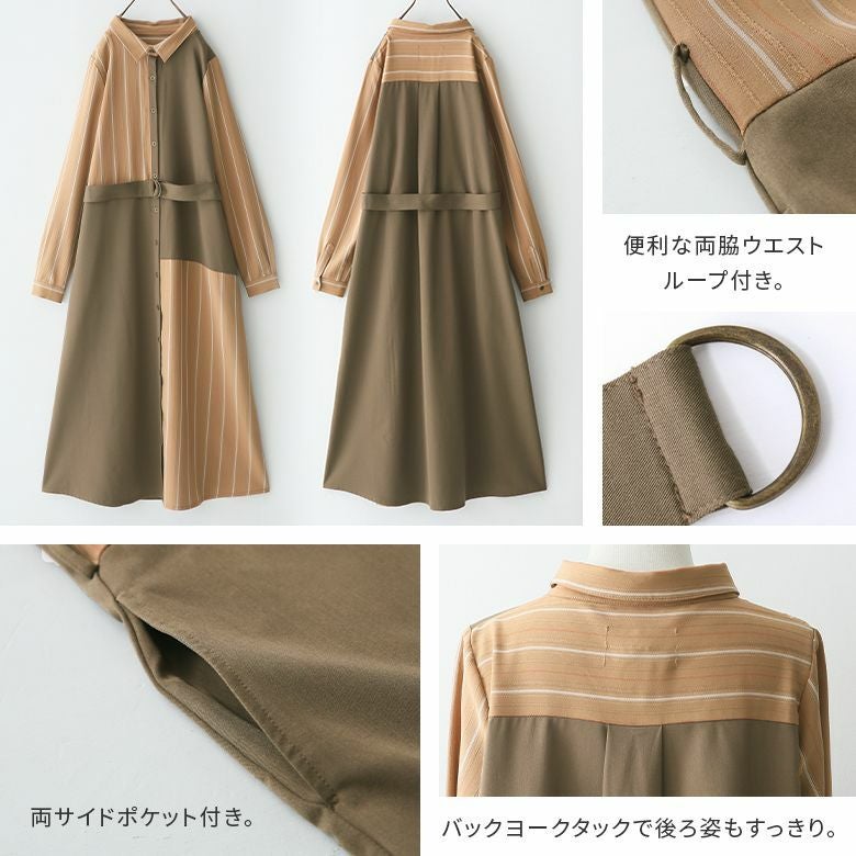 着るだけでお洒落確実の異素材シャツワンピース。