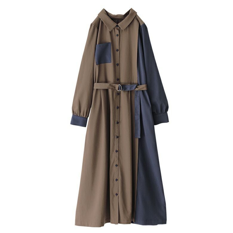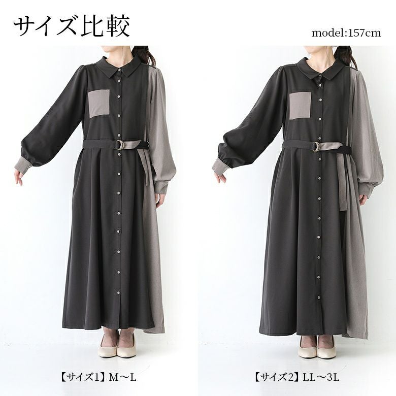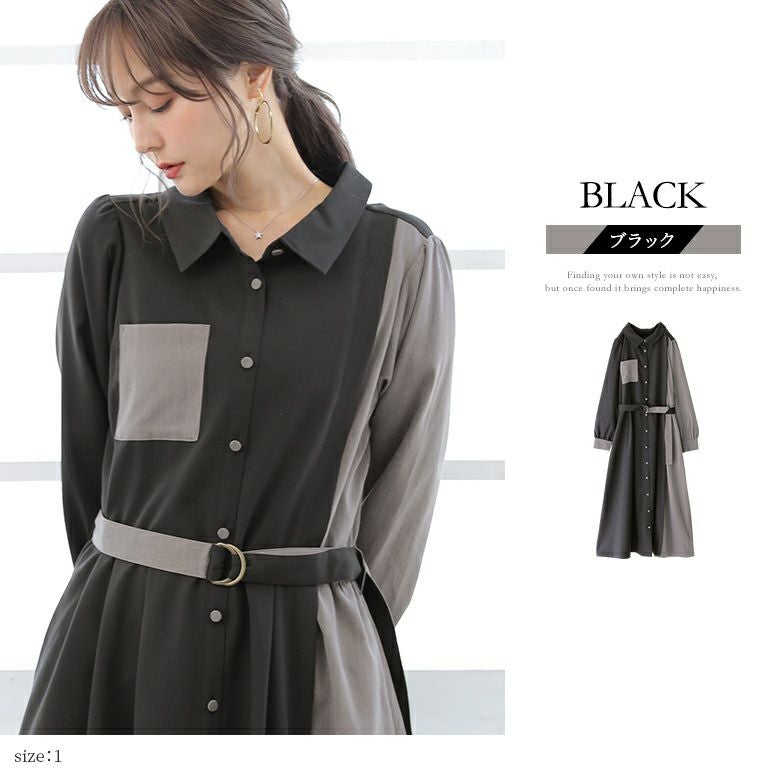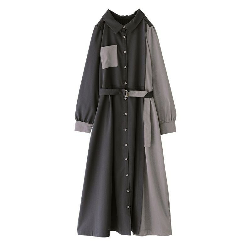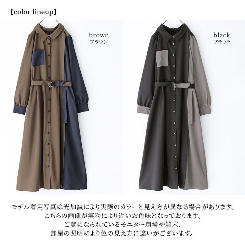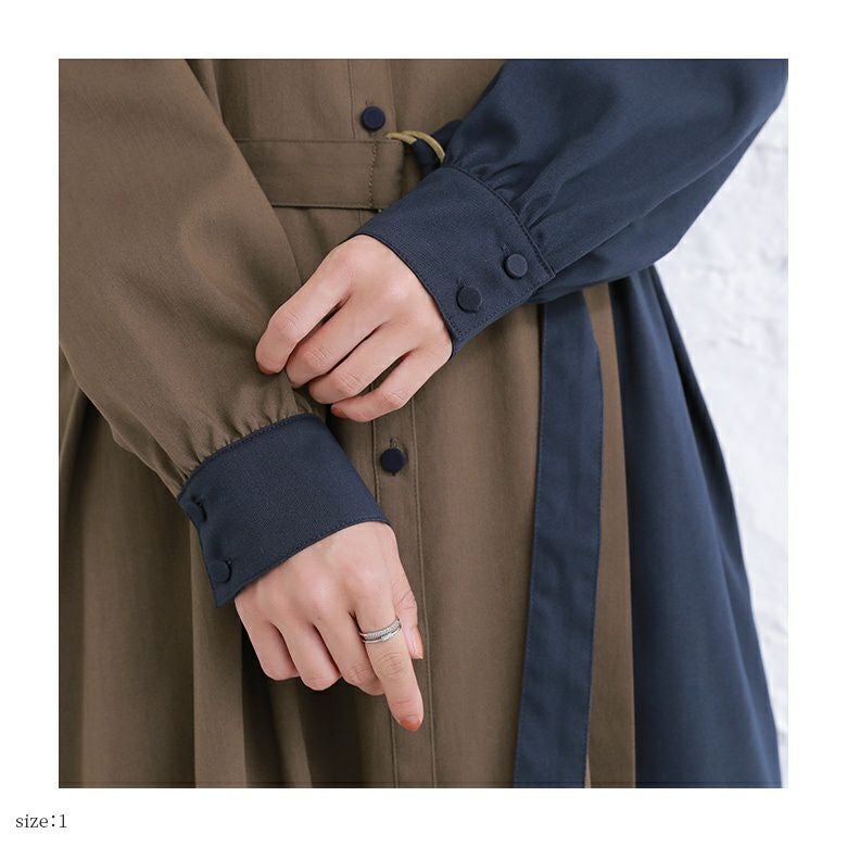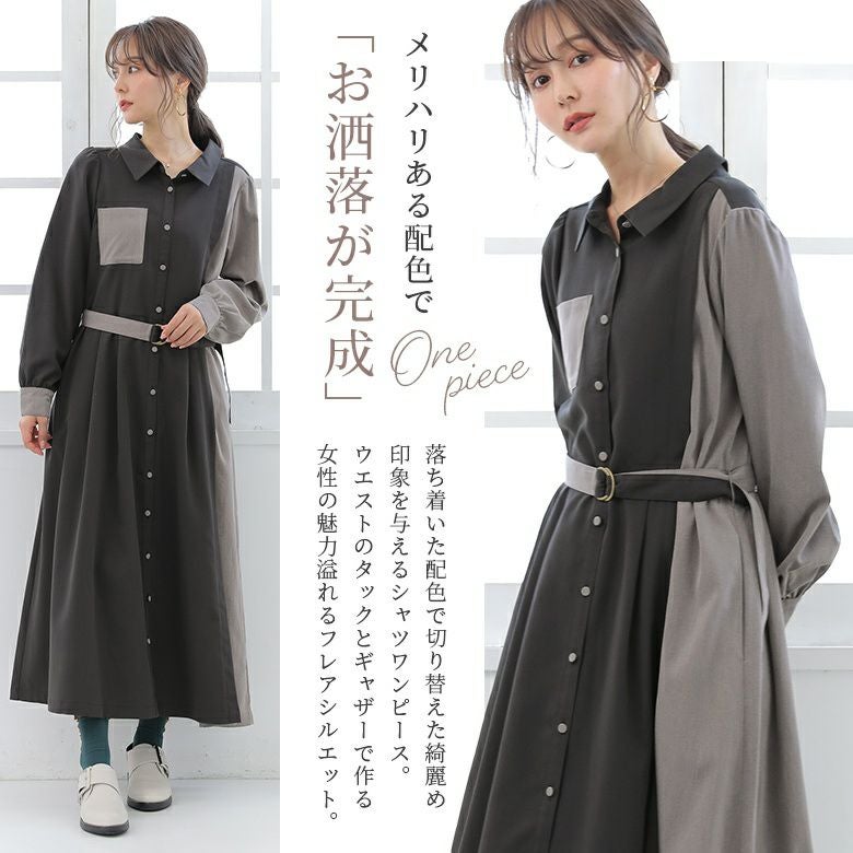 派手になりすぎない落ち着いたカラー配色で切り替えた、きれいめ印象を与えるシャツワンピース♪