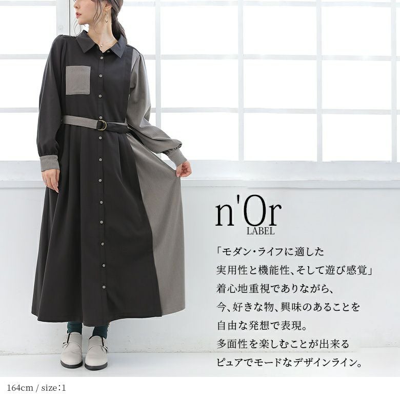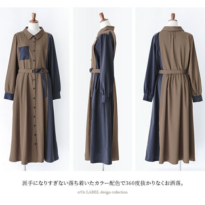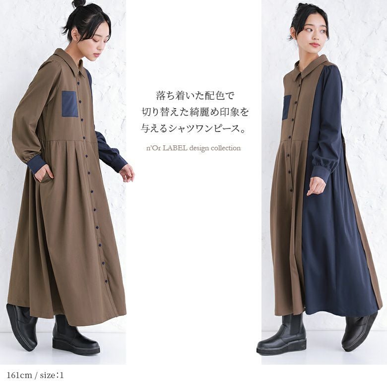 360度抜かりなくお洒落≪n'OrLABEL≫配色切替デザインシャツワンピースです。
