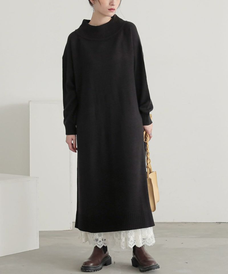 大人の抜け感漂う、ボトルネック風こなれニットワンピ♪