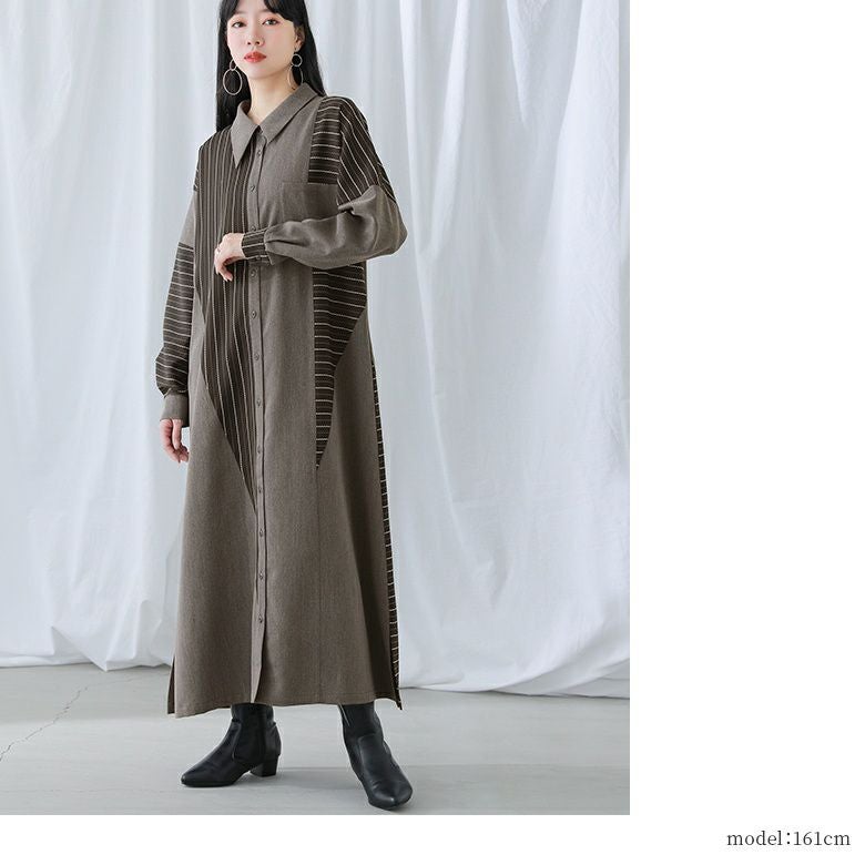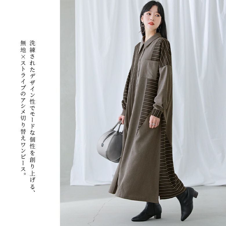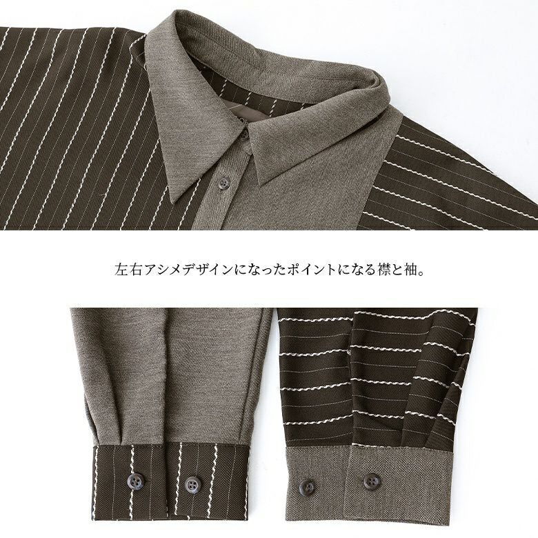 『kOhAKUストライプ柄切替アシメシャツワンピース』