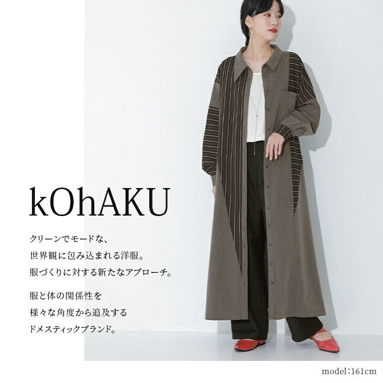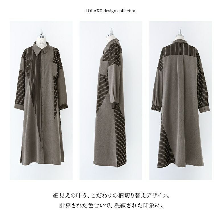 ≪kOhAKU≫ストライプ柄切替アシメシャツワンピースです。