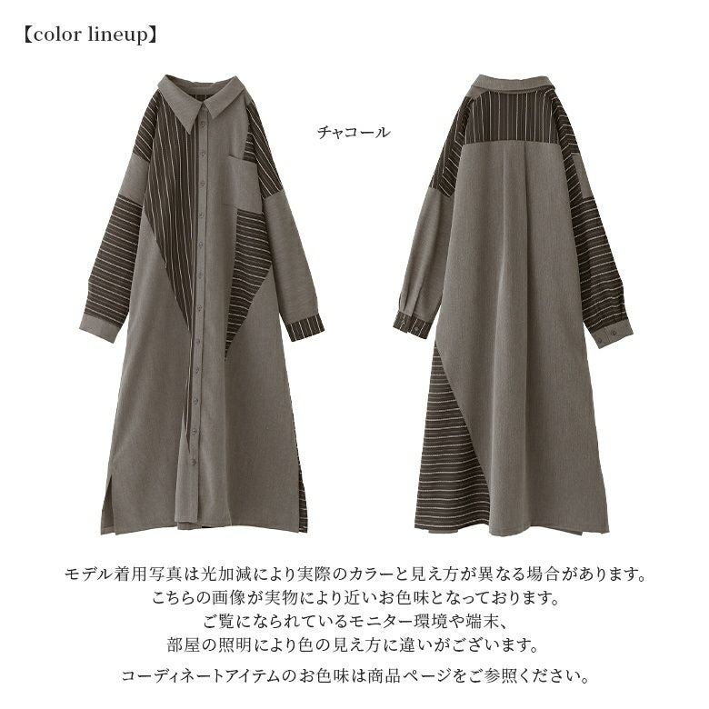 すっきり見せも叶えるこだわりのアシメ切替デザインは、計算された色合いで洗練印象へと導く。モードな個性を創り上げるここだけのシャツワンピースです。