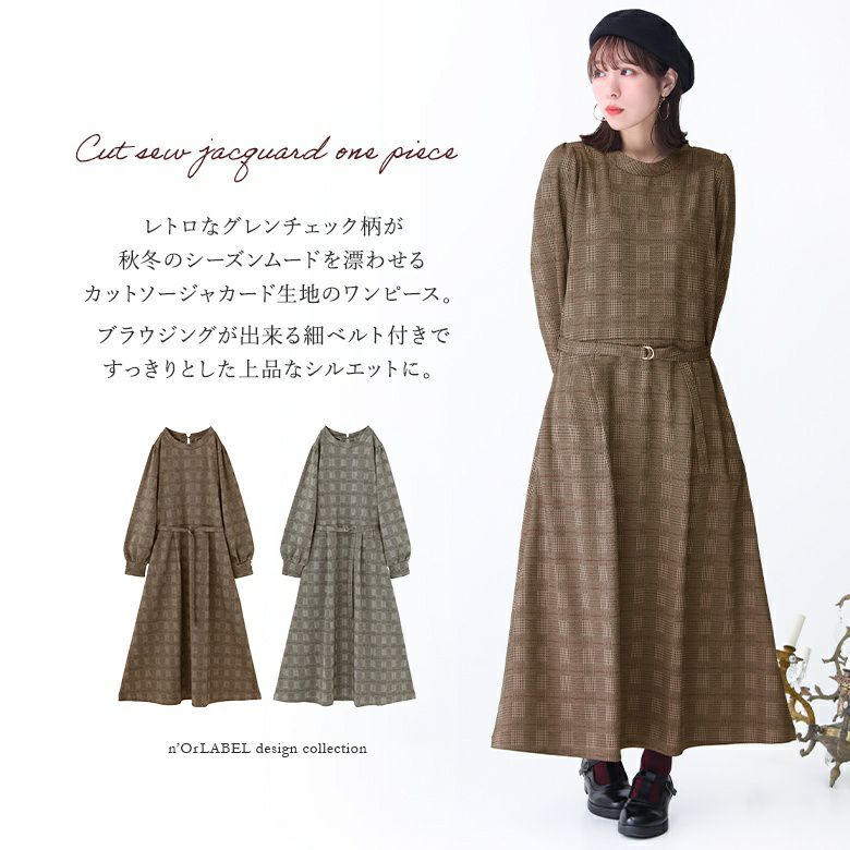 n'OrLABELグレンチェック柄ジャカードカットソーワンピースです。