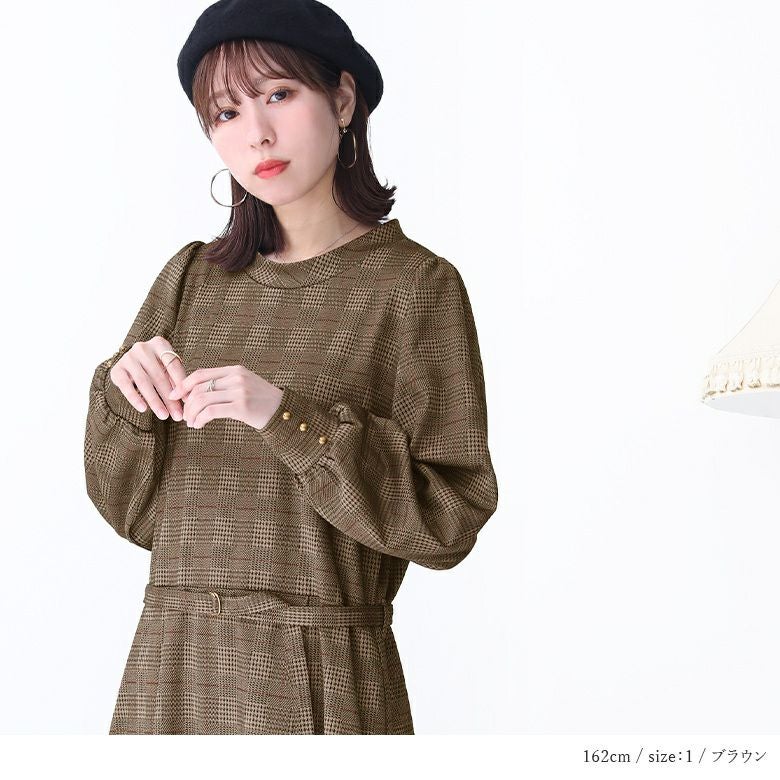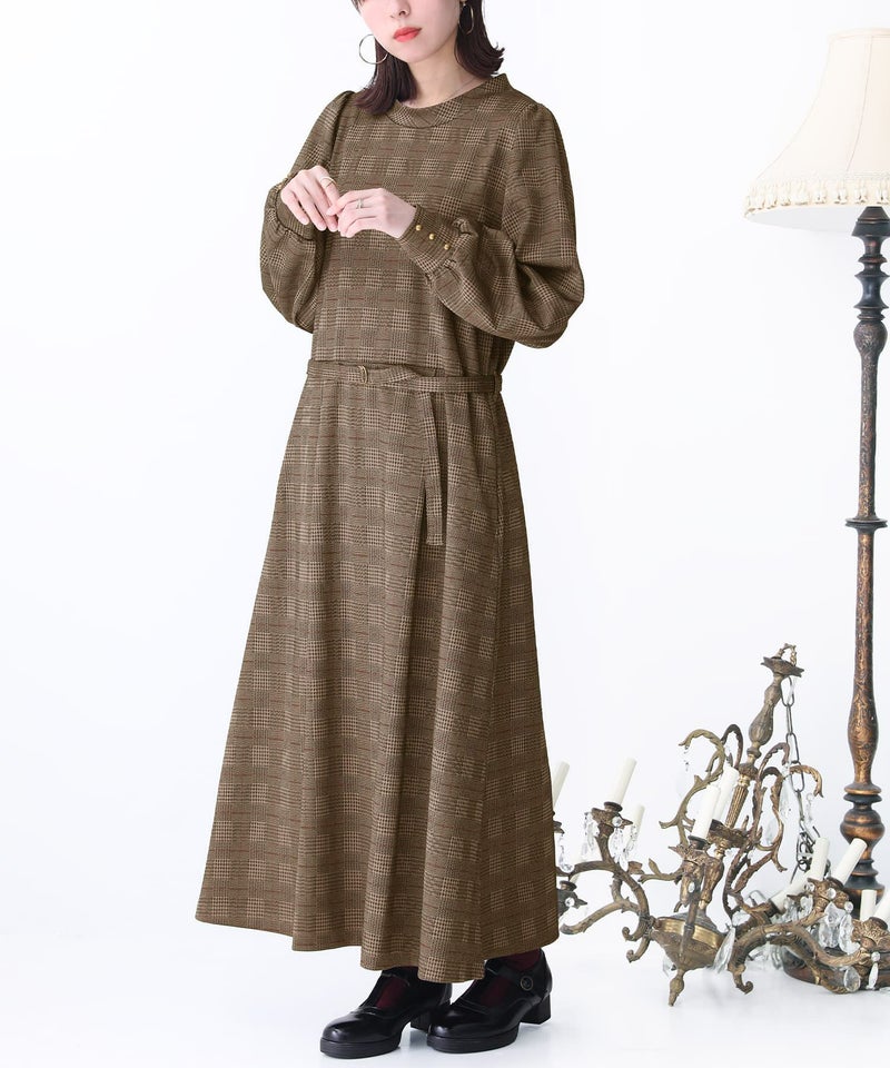 レトロなグレンチェック柄がこれからのシーズンムードを漂わせるロングワンピース。