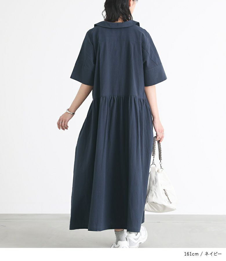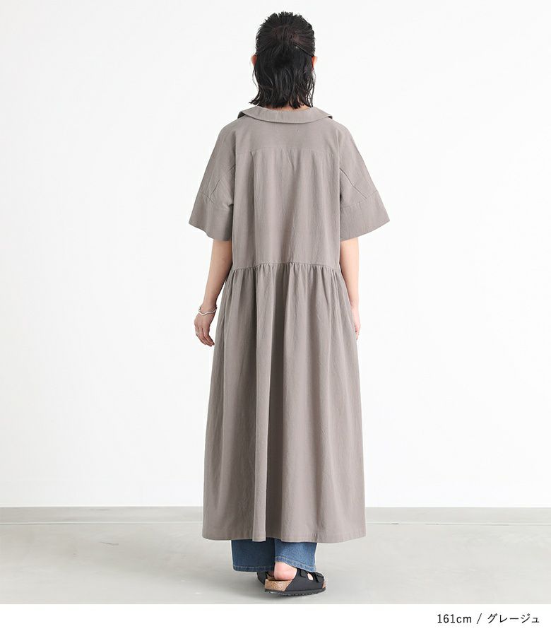 開襟デザインが涼し気なシャツワンピース。