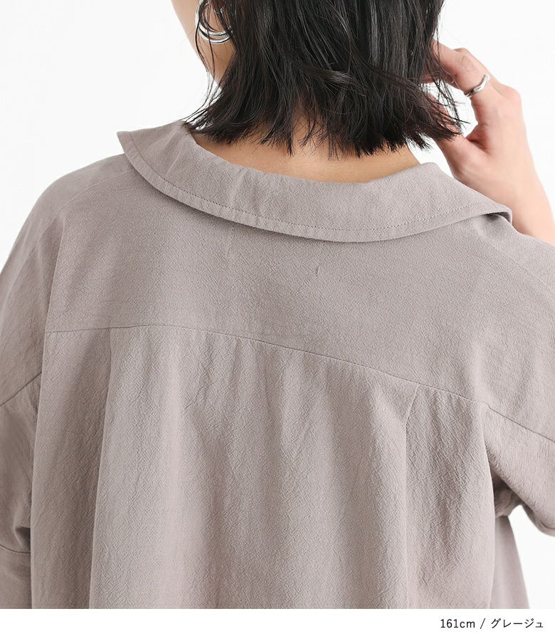 ナチュラルな風合いの、肌触りの良いコットン100%の生地。しっかりとした生地感で、裏地なしで涼しく着用できます。