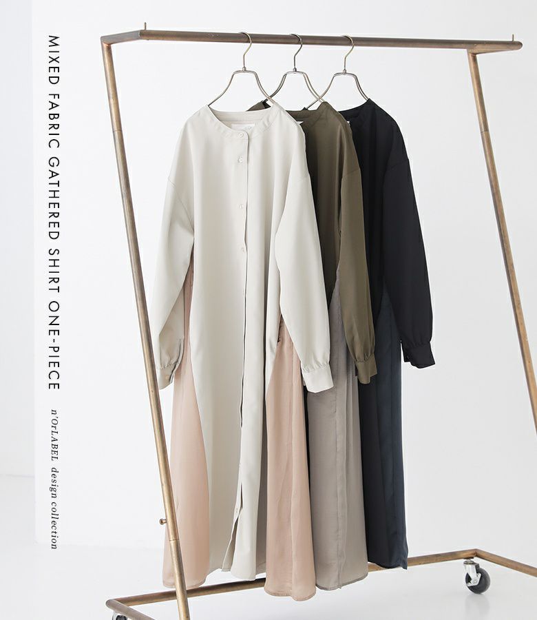 『n'OrLABEL異素材ギャザーシャツワンピース』