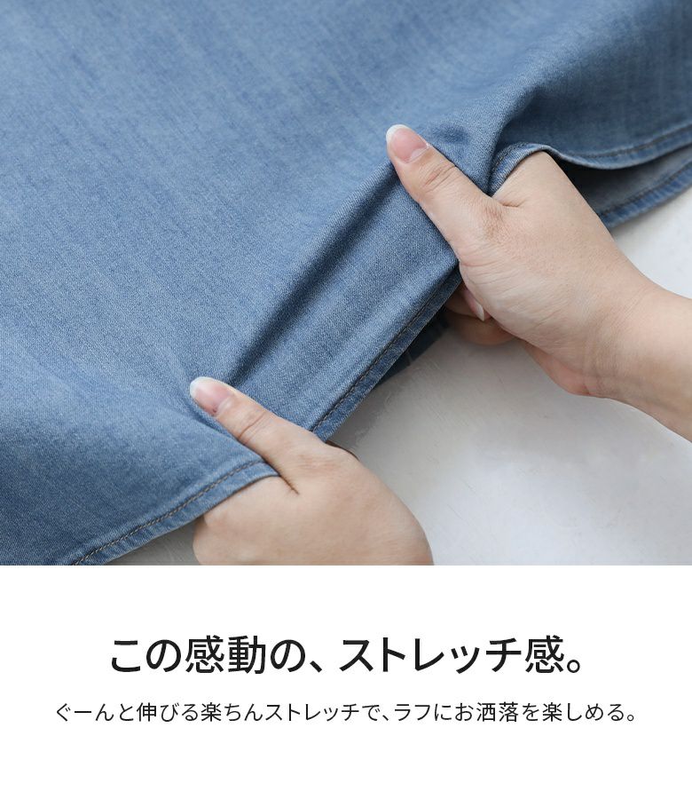 ストレッチの効いた薄手のデニムで暑い季節も着心地ラクにお洒落を楽しめます。