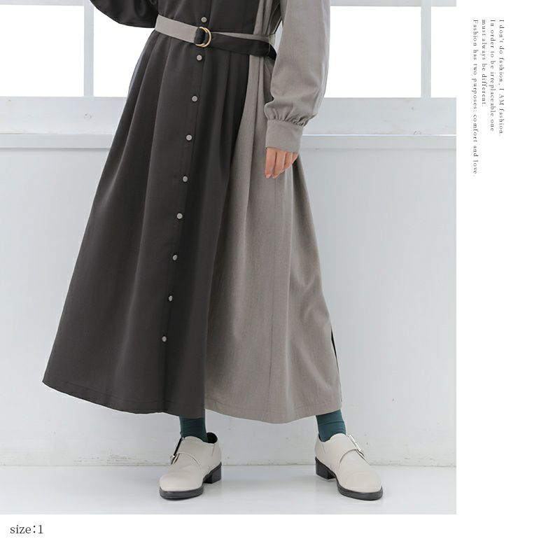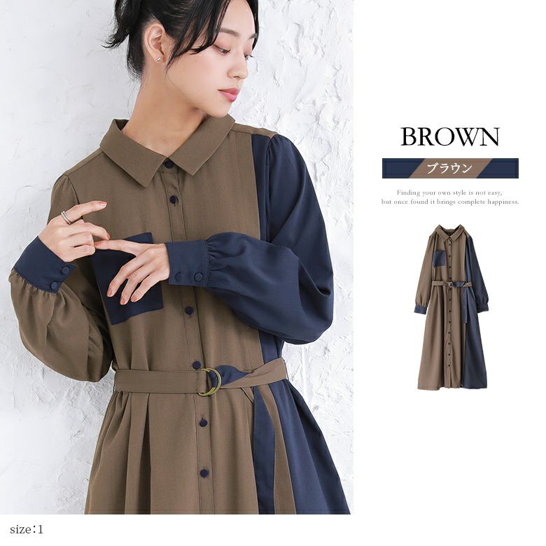 派手になりすぎない落ち着いたカラー配色で切り替えた、きれいめ印象を与えるシャツワンピース♪