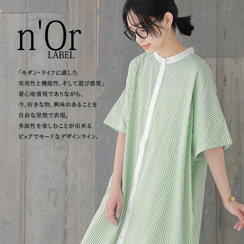 『n'OrLABELストライプ柄クレリックシャツワンピース』