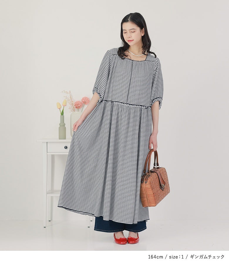 | 【1(M~L)】 袖丈:ひじ下3cm位 着丈:くるぶし上3cm位 腕周り:ややゆったり バスト:ややゆったり ウエスト:ややゆったり ヒップ:ややゆったり 全体:ややゆったり