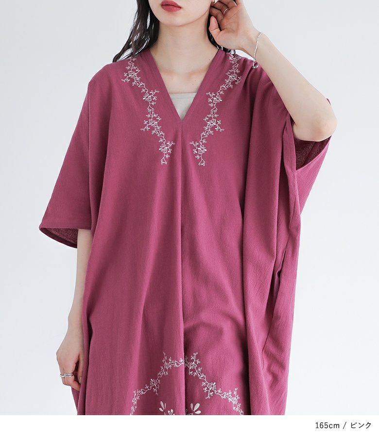5. 【送料無料】『somari imaginationカットワーク刺繍カフタンワンピース』【メール便不可】【20】