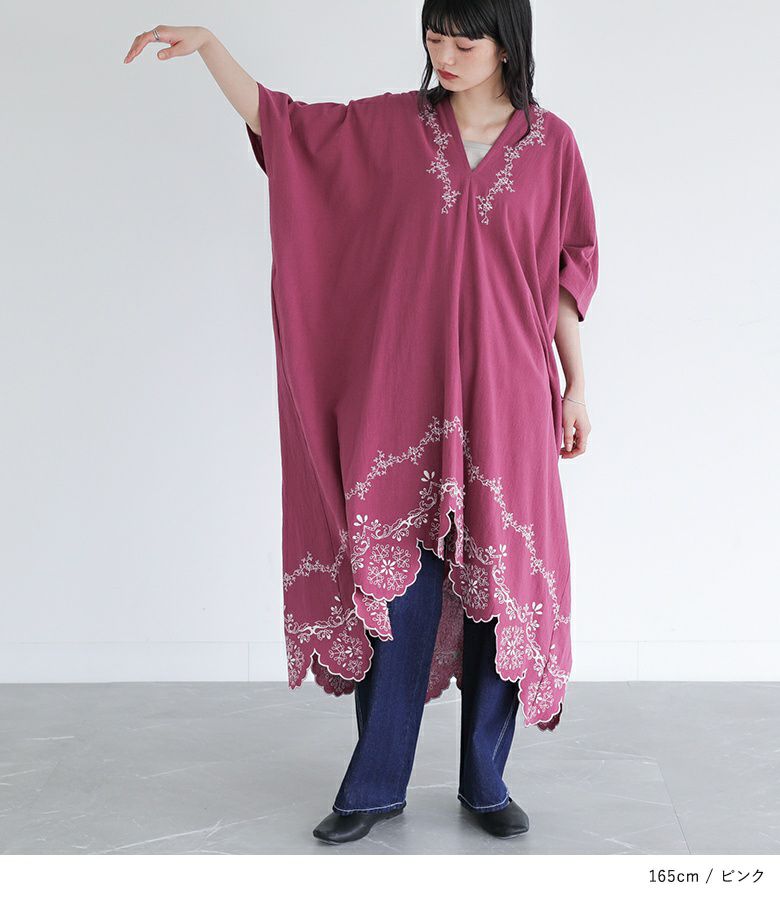 4. 【送料無料】『somari imaginationカットワーク刺繍カフタンワンピース』【メール便不可】【20】