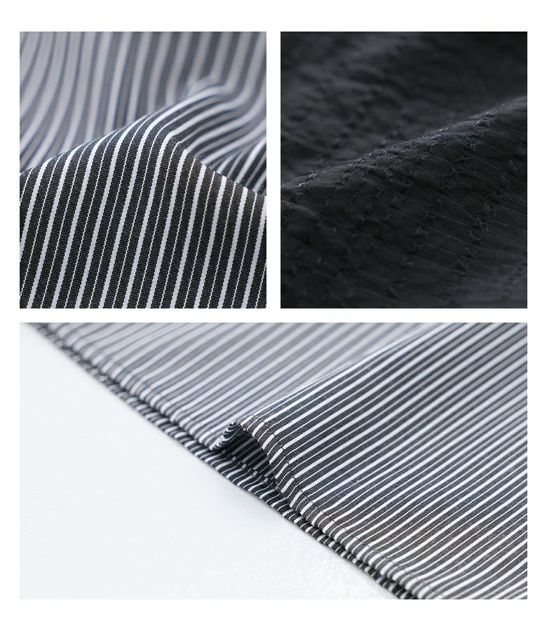 さらりとした肌触りのシャツ生地と涼やかな風合い感じるジャカード生地を使用。程よく薄手な生地感で、暑い時期の着用に最適です。