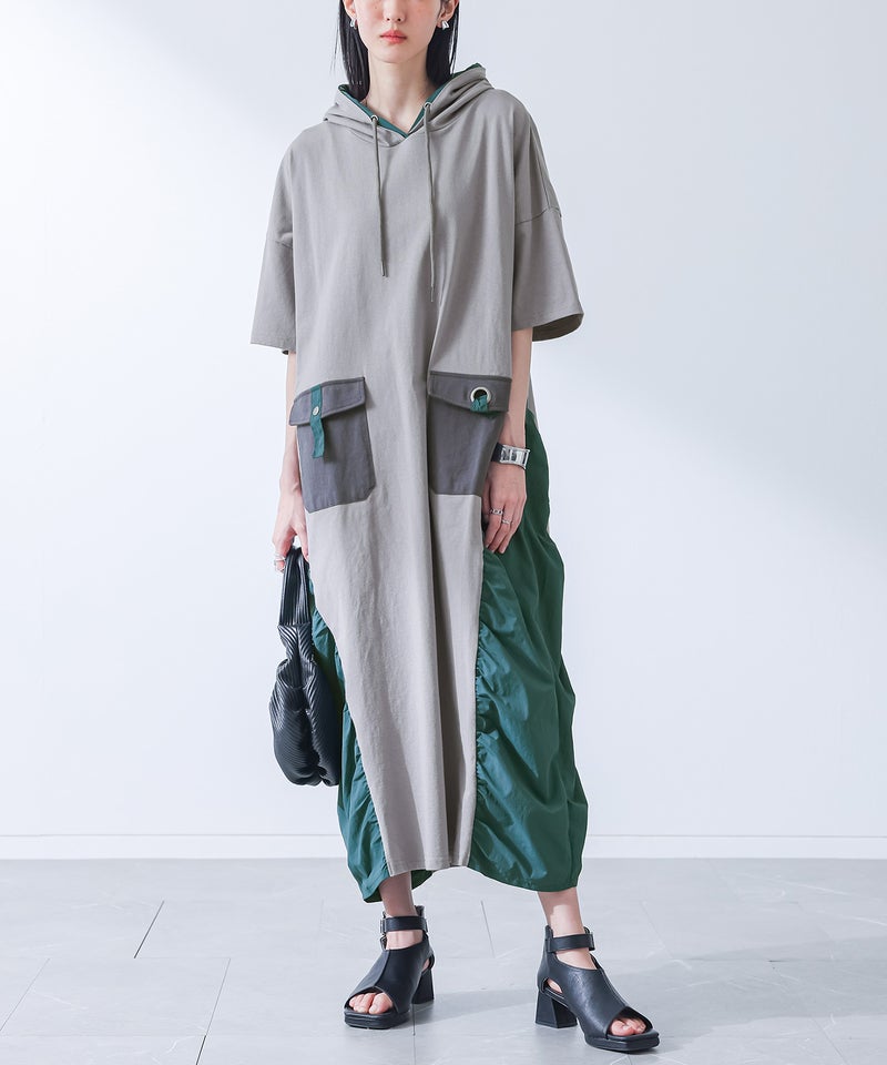 『kOhAKU配色アシメフーディーカットソーワンピース』