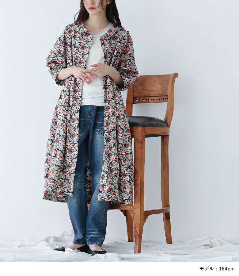 一着で主役になる、ゆる感が漂うコクーンシルエット。アンティークな雰囲気が印象的なヴィンテージフラワー柄が、女性をより素敵に魅せる。長めの着丈や短すぎないふんわり袖だから、甘すぎず大人女子にもぴったりです。