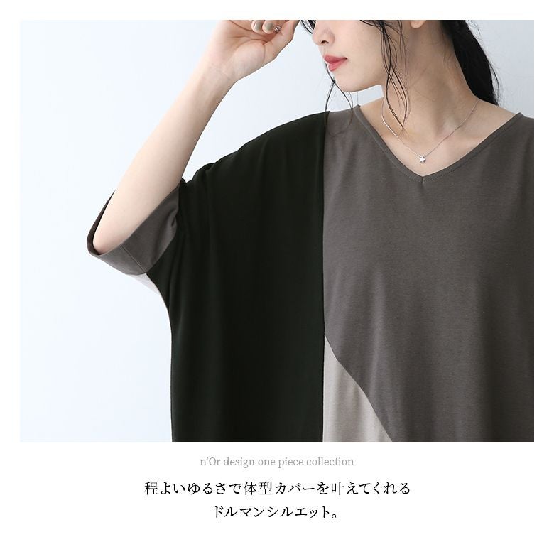 『n'OrLABEL配色切り替えコクーンワンピース』