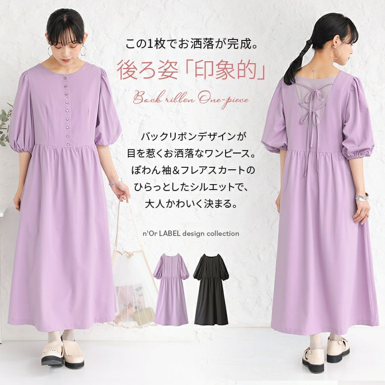 この一枚でお洒落が完成する≪n'OrLABEL≫バックリボンデザインワンピースです。
