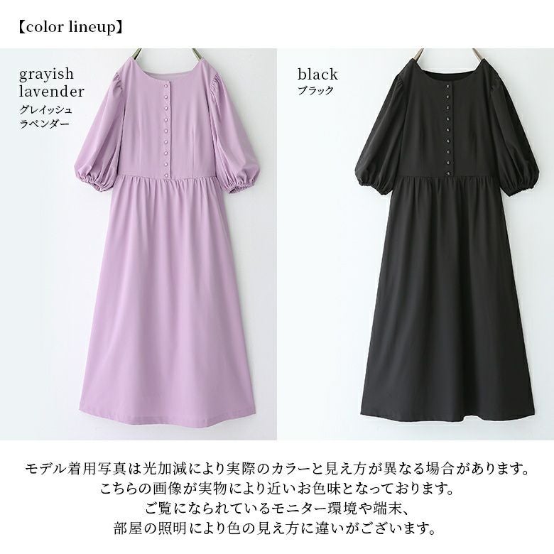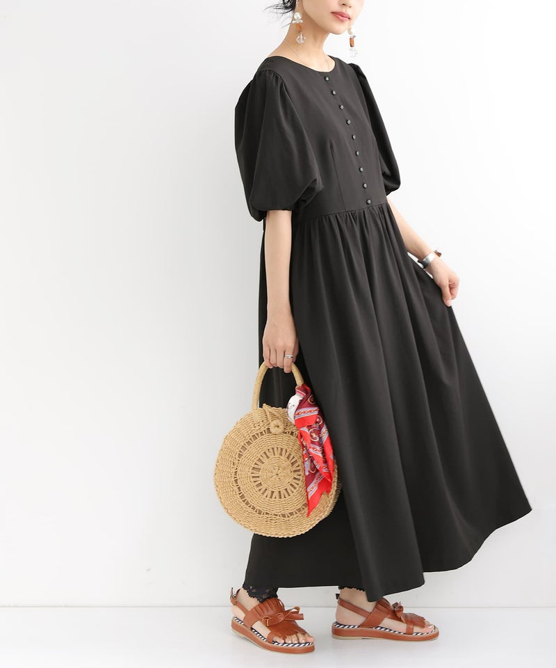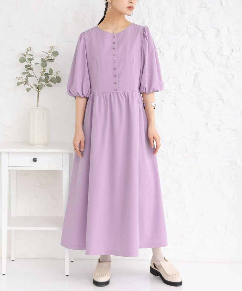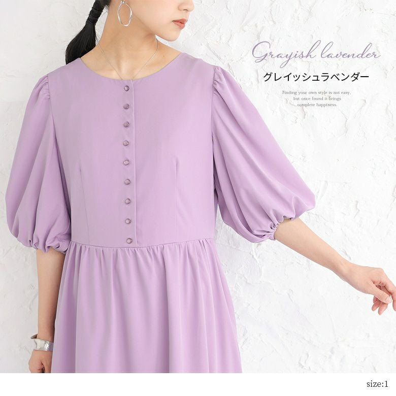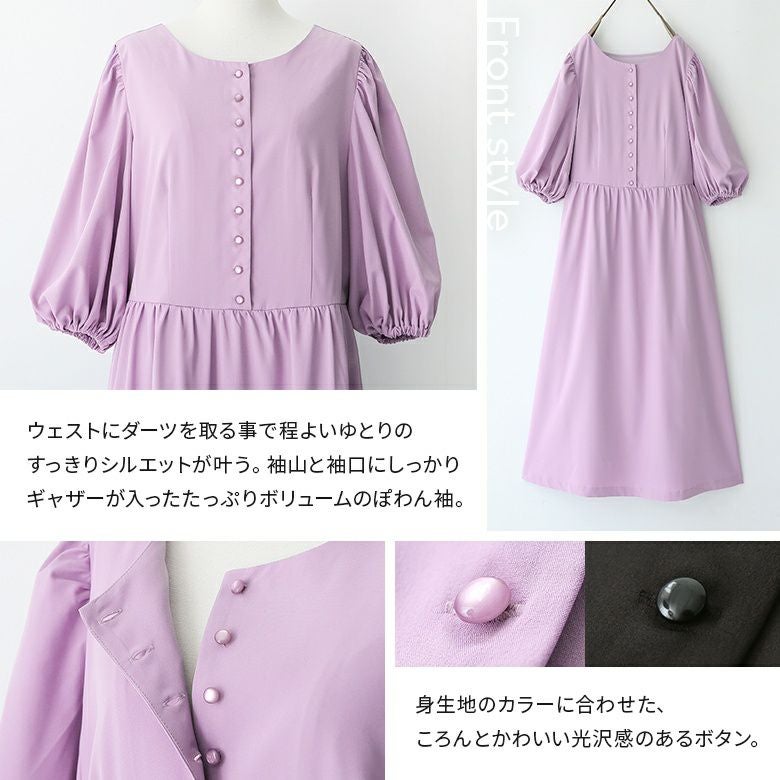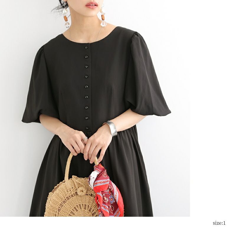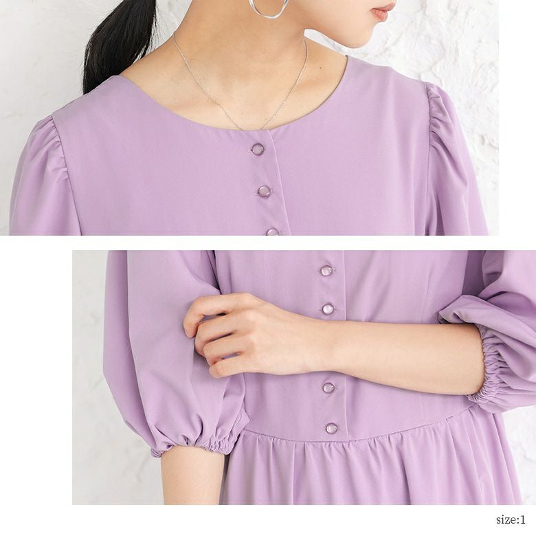 ひらっとしたフレアシルエットながら、ウエスト部分に切替を施しているからすっきり魅せを実現。たっぷりギャザーが入ったボリュームのあるぽわん袖が女性らしさを放ちます。