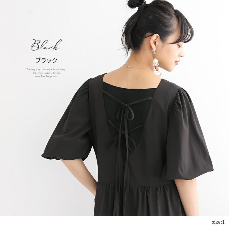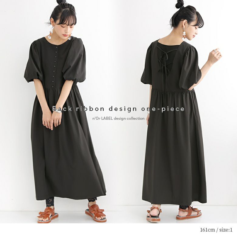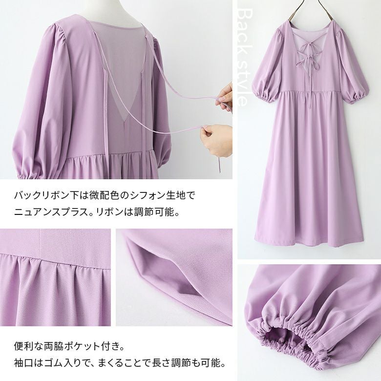 バックリボンデザインが目を惹く、ロングワンピース♪