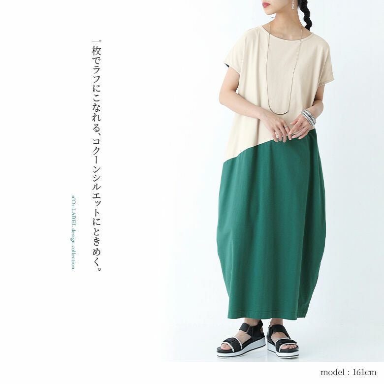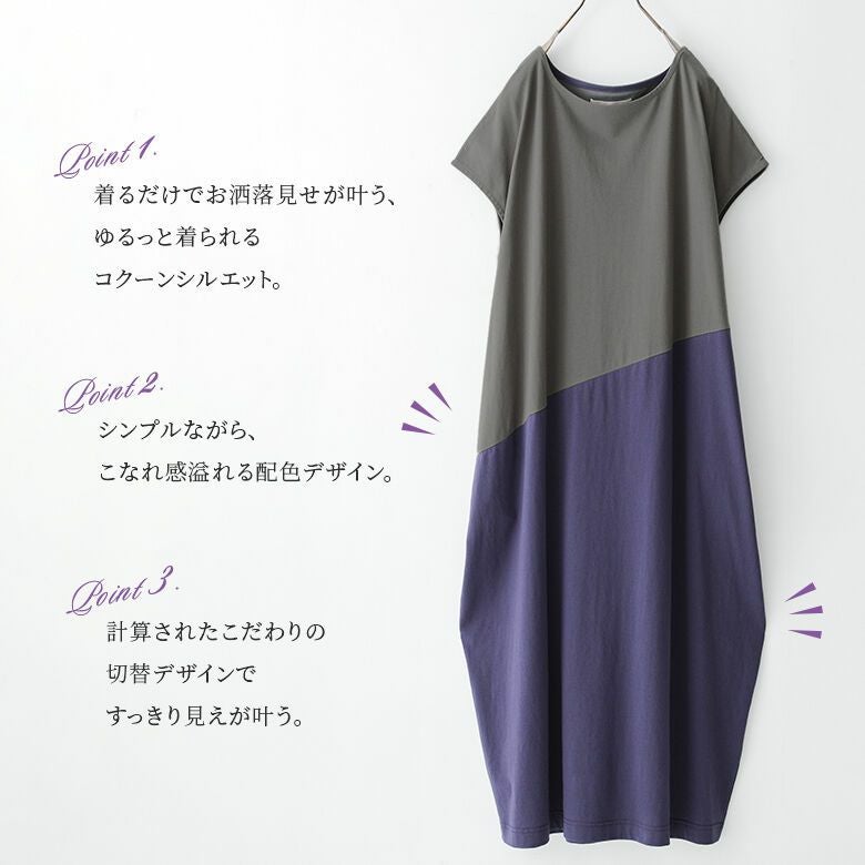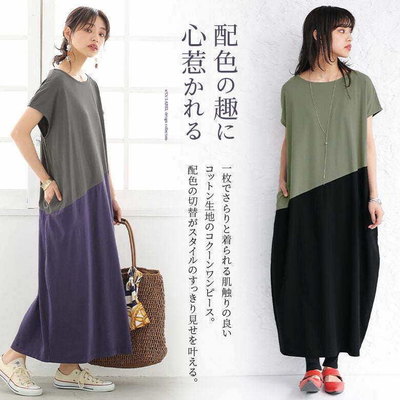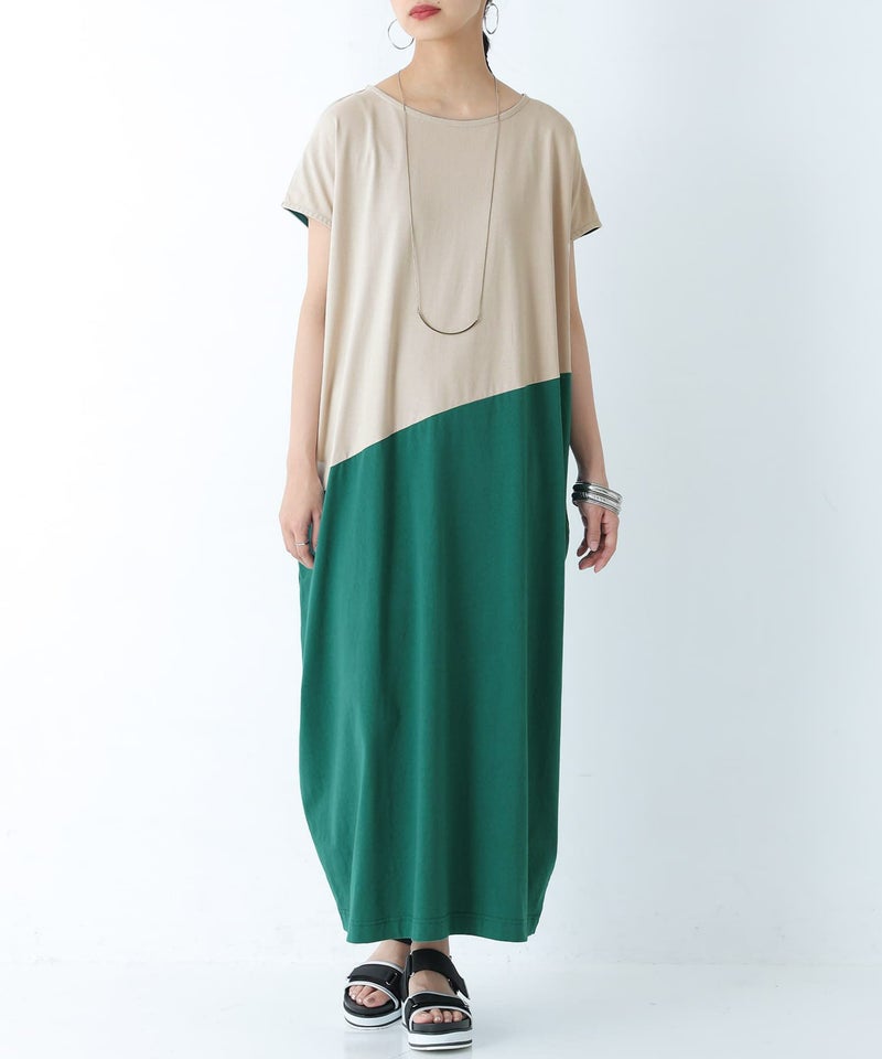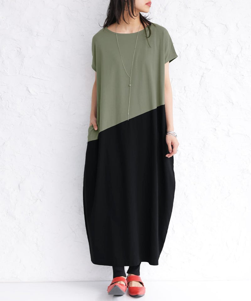 一枚でラフにこなれる、配色コクーンワンピース♪
