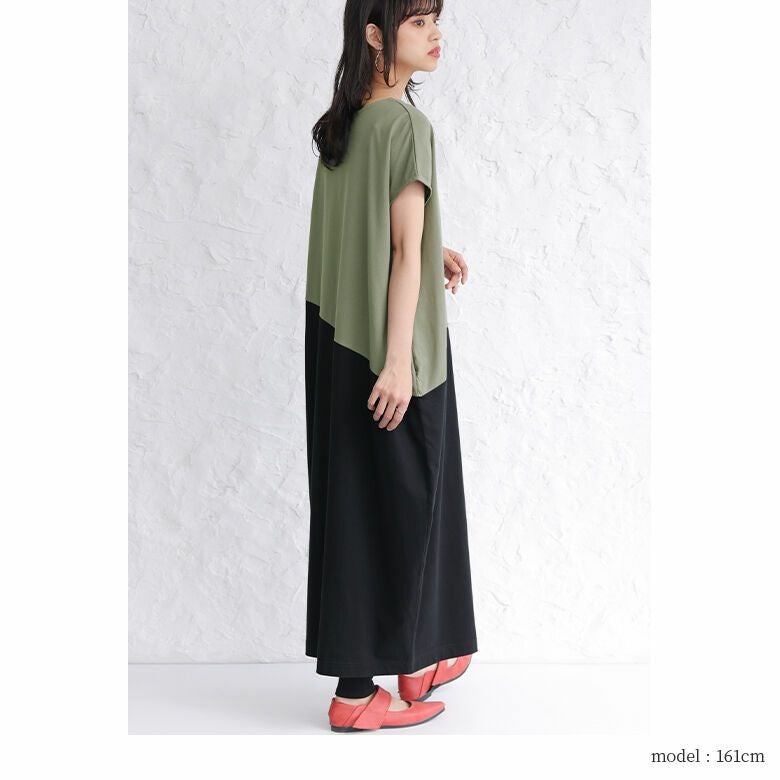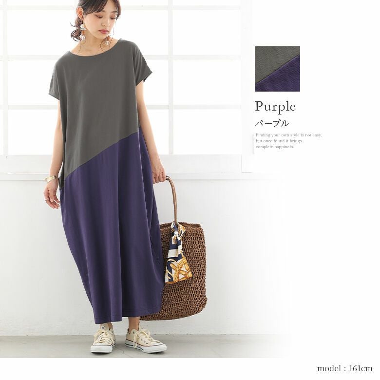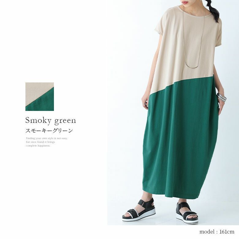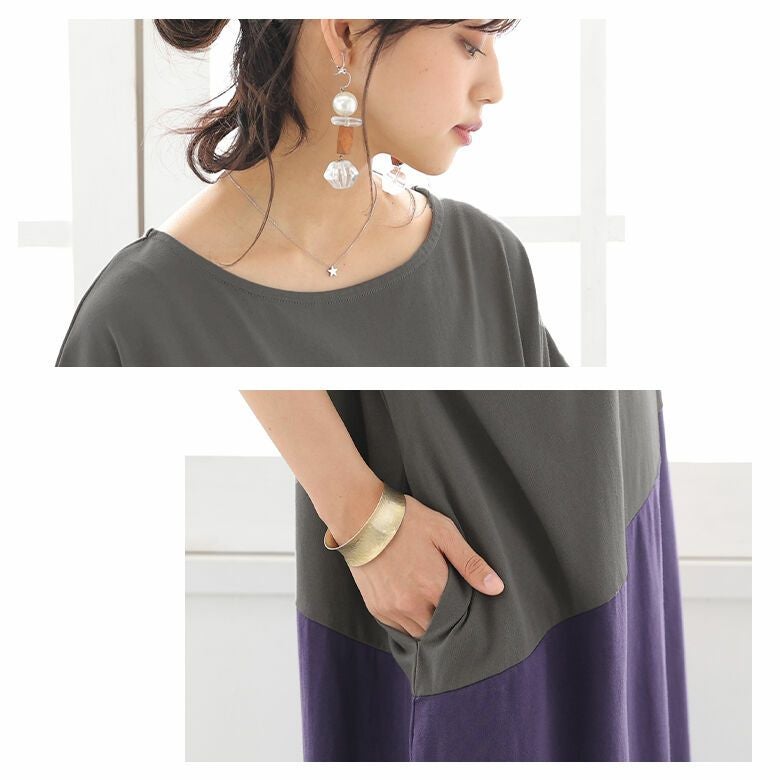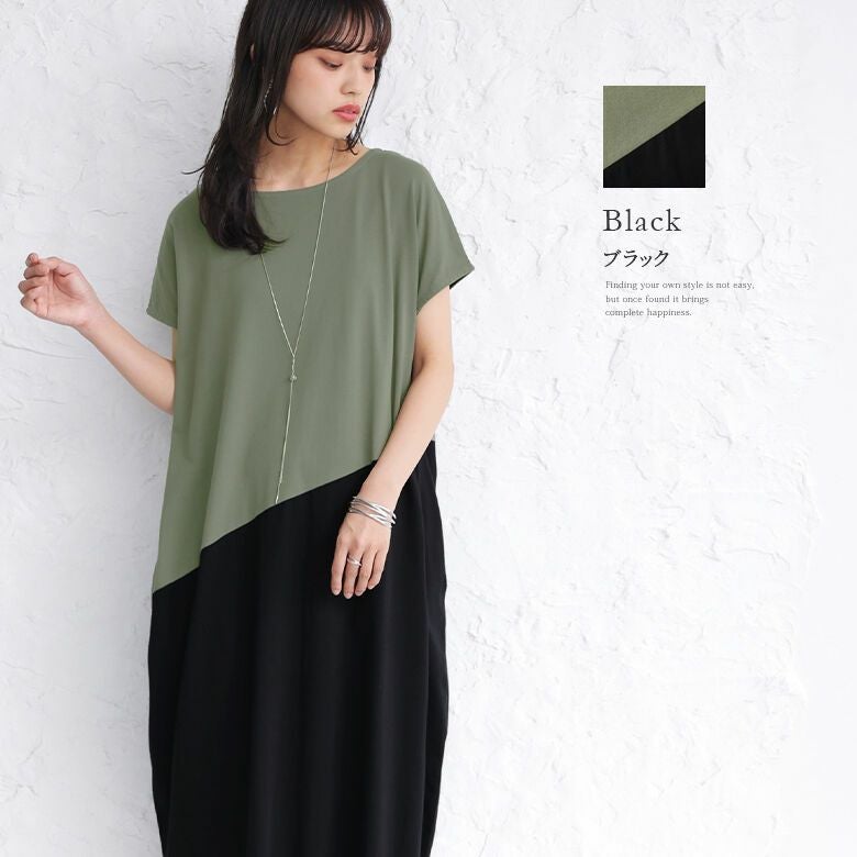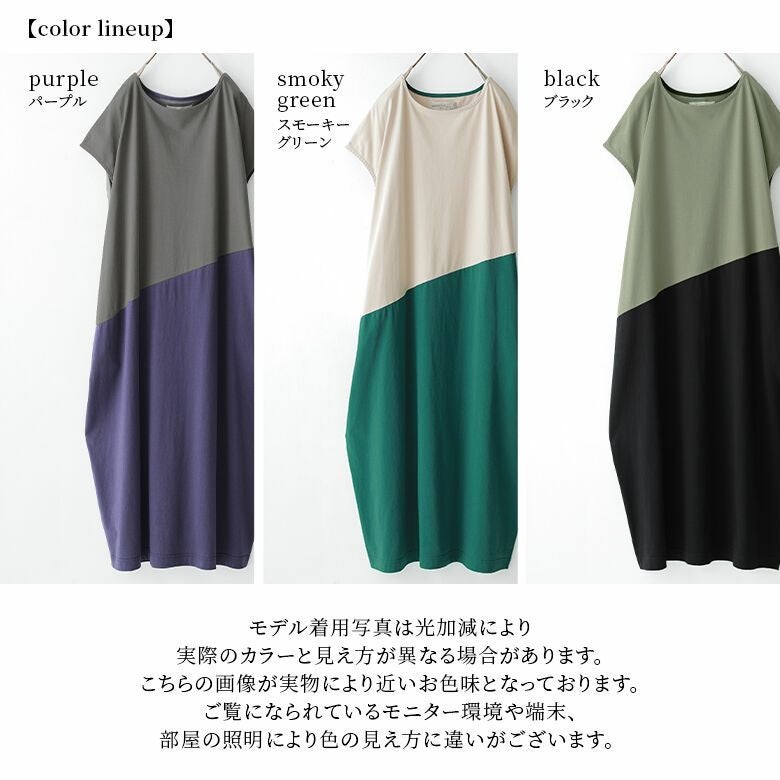 一枚でラフにこなれる、配色コクーンワンピース♪