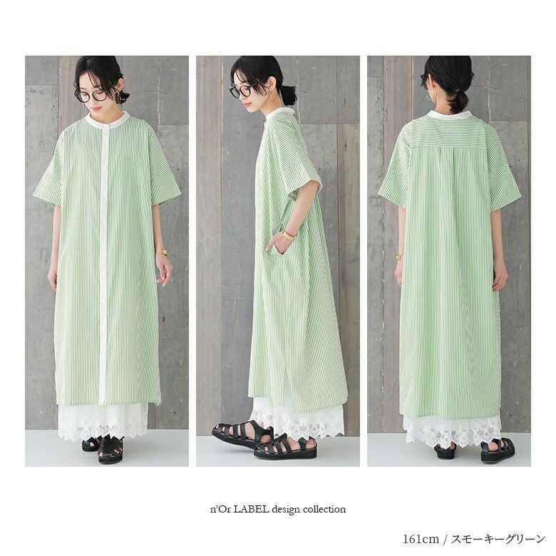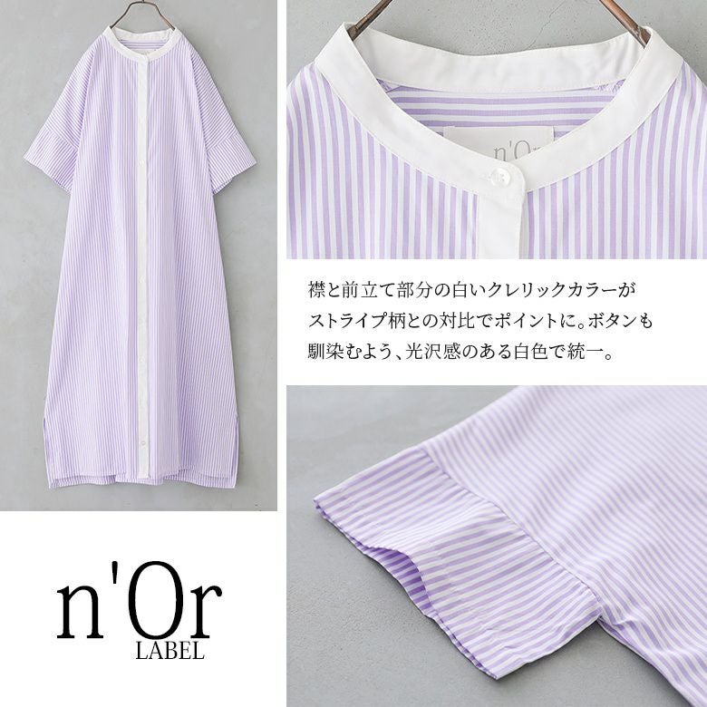 『n'OrLABELストライプ柄クレリックシャツワンピース』