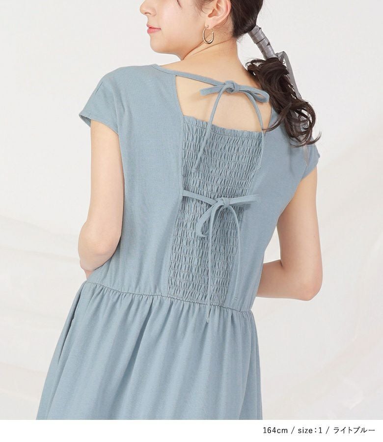 【40%OFF】選べるM~3Lサイズ展開!バックリボンとシャーリングデザインが目を惹くワンピース。