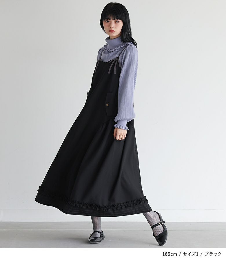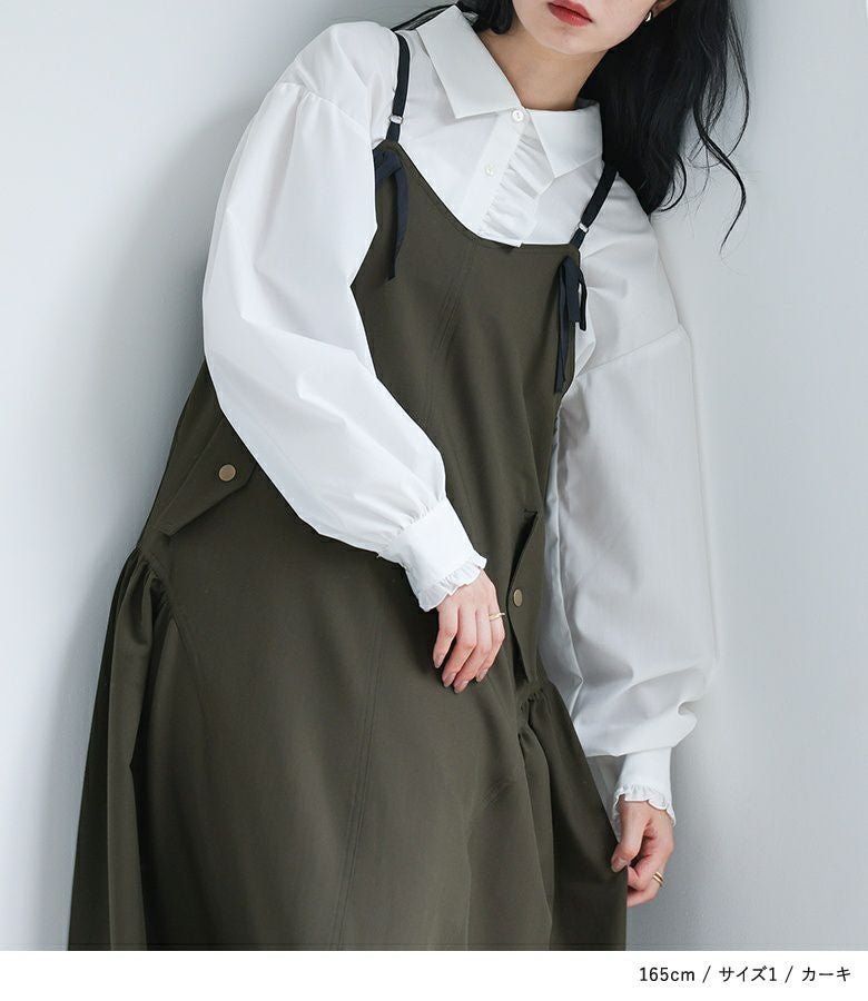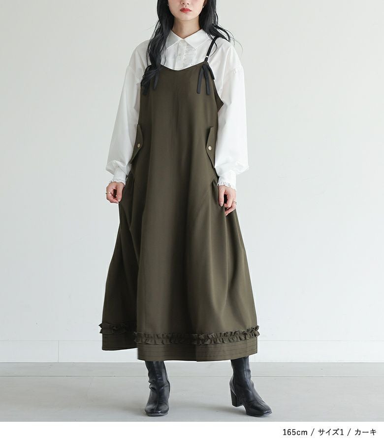 アジャスター真ん中で着用しました。肩紐は調整可能なので、着丈のバランスも自分好みにアレンジできるのが嬉しいです。