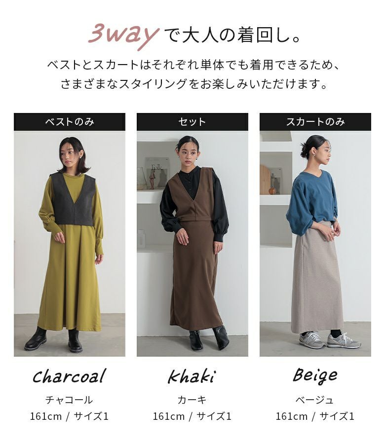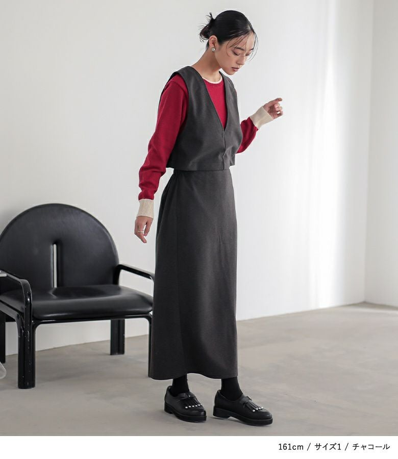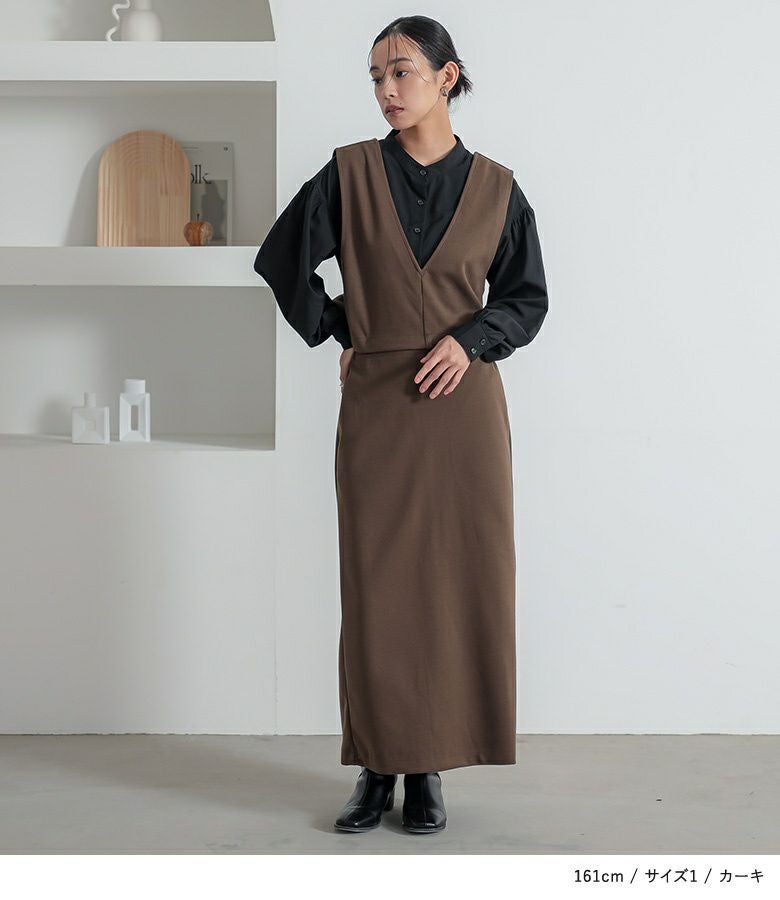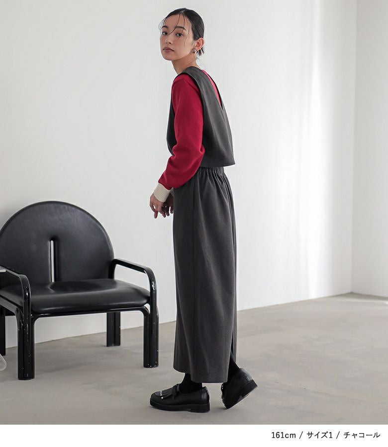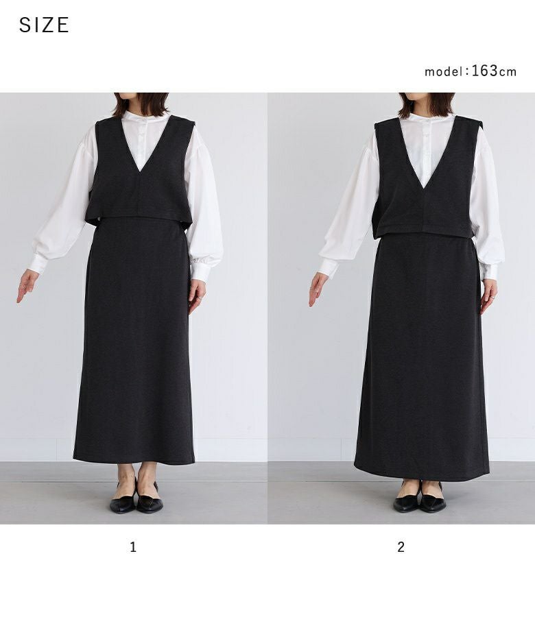 【普段着用】 Tops: M Bottoms: M/L | 【1】 着丈:くるぶし上10cm位 腕周り:ゆったり バスト:ややゆったり ウエスト:ジャスト ヒップ:ややゆったり 全体:スッキリ