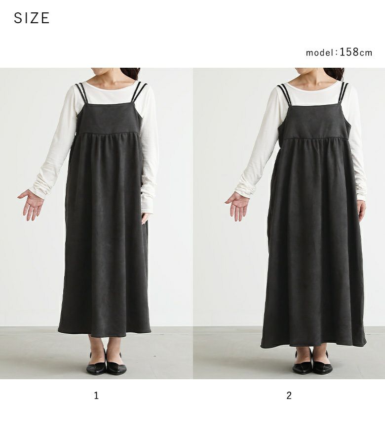 【2】 着丈:くるぶしが隠れる位 腕周り:ややゆったり バスト:ジャスト ウエスト:ゆったり ヒップ:ゆったり 全体:ゆったり