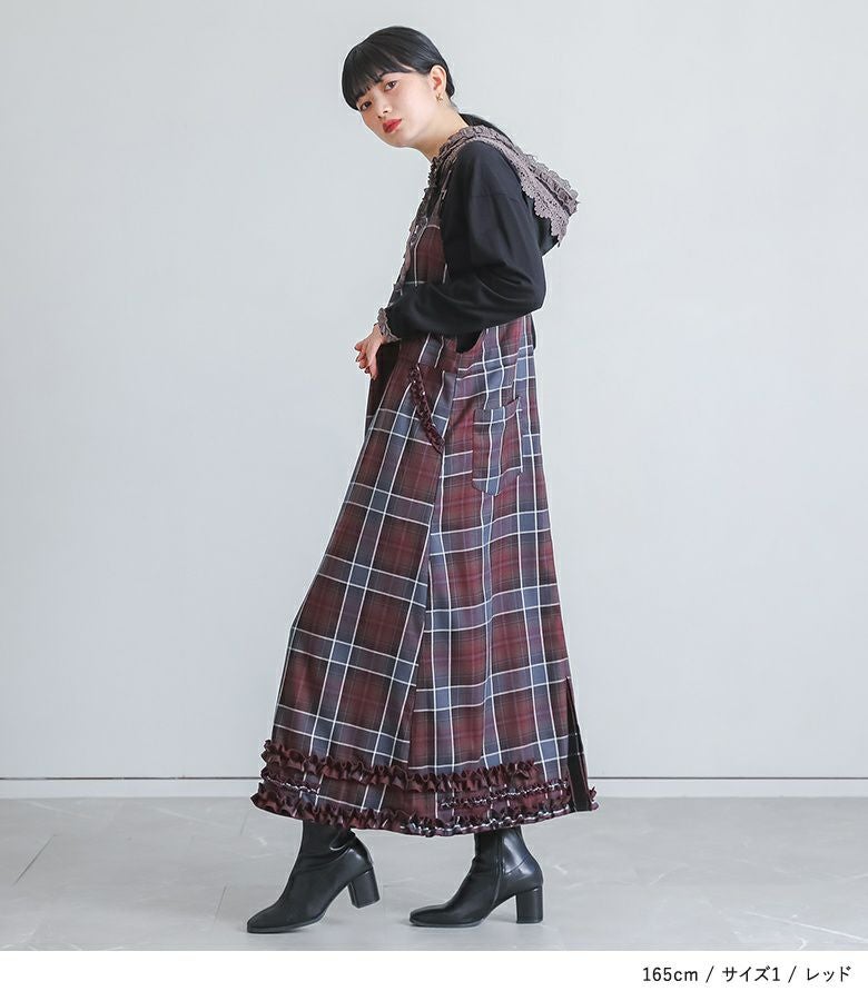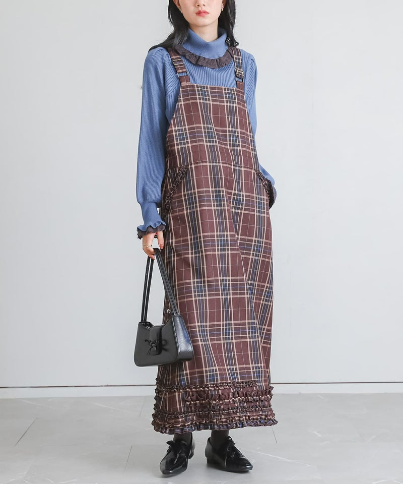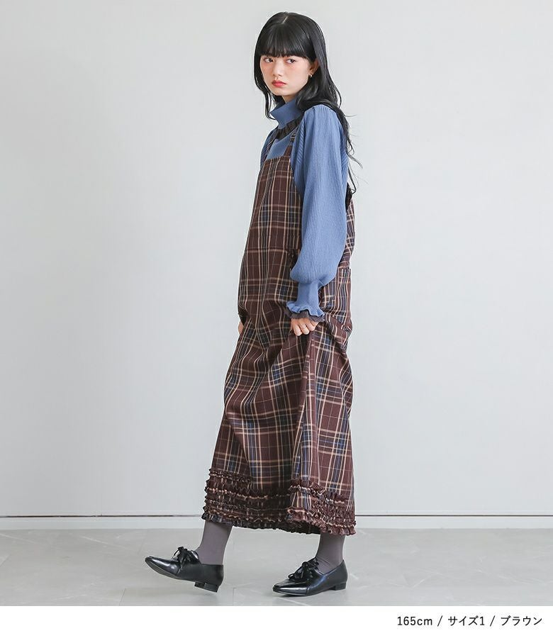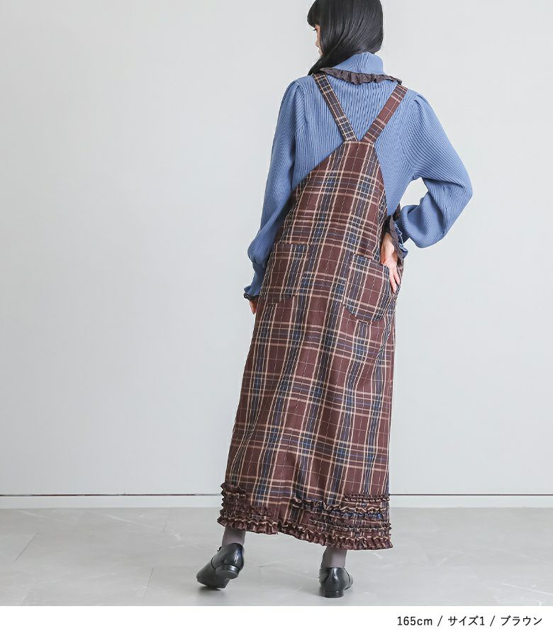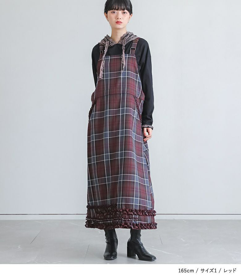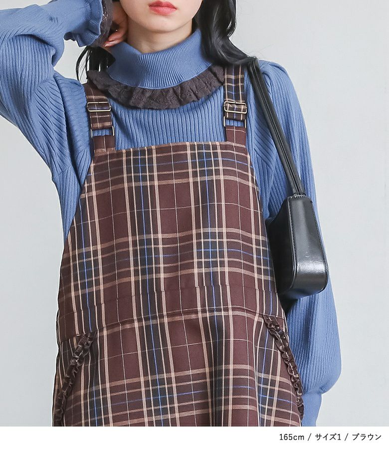 窮屈感なく着用できました。落ち着いたトーンと程よいフリル使いで大人可愛いジャンスカです。