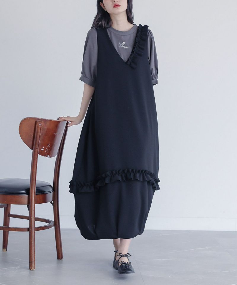 【2】 着丈:くるぶしが見える位 腕周り:ゆったり バスト:ゆったり ウエスト:ゆったり ヒップ:ゆったり 全体:ゆったり