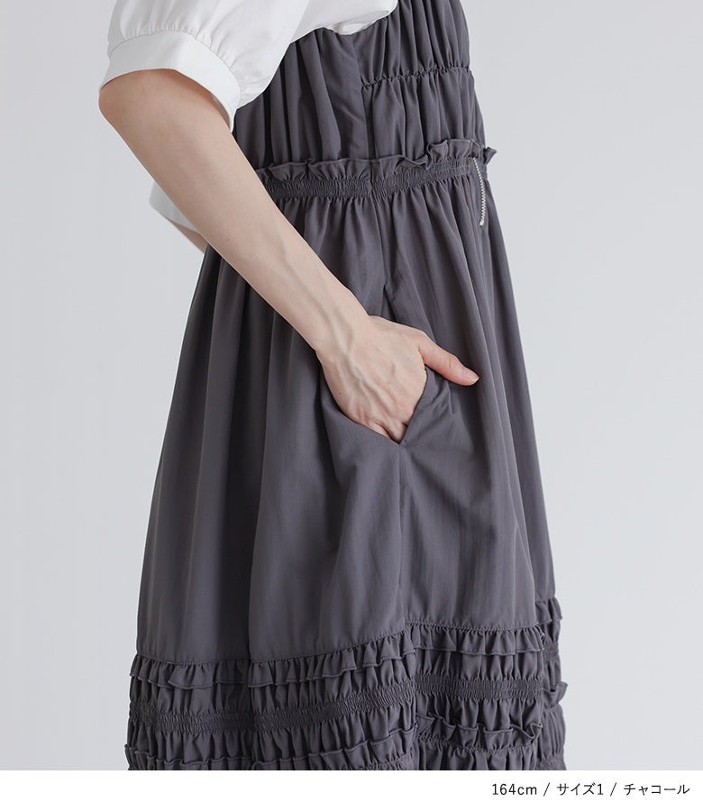 アジャスター10cm位置で着用。全体的にゆったり着用出来ました。甘くなり過ぎないデザインも嬉しいです。