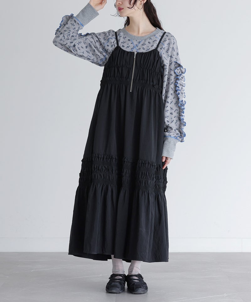 【2】 着丈:かかとが隠れる位 腕周り:ゆったり バスト:ややゆったり ウエスト:ややゆったり ヒップ:ややゆったり 全体:ややゆったり