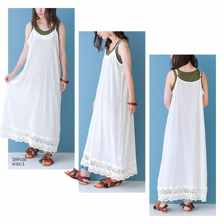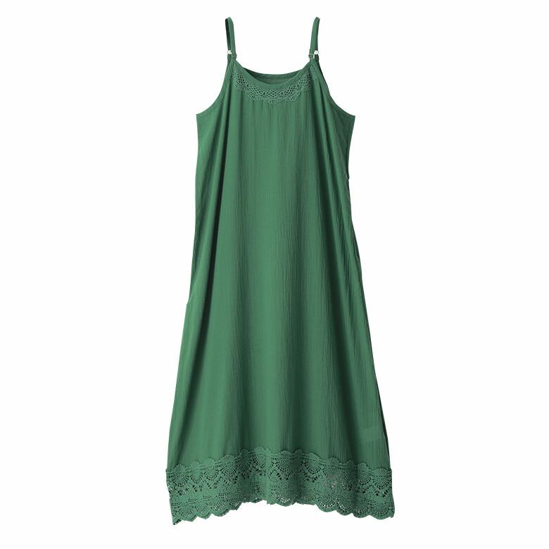 サイズ表と生地感を考えたらあまり余裕がないかと思ってたけど普通に着れました。 162cmですが着丈マキシ丈になりました。 あまり無い色なのでいいです。赤が欲しかったけど中々入荷しないので緑にしましたがこれもステキ。 ワンピースのインナーにちょうどいい♪