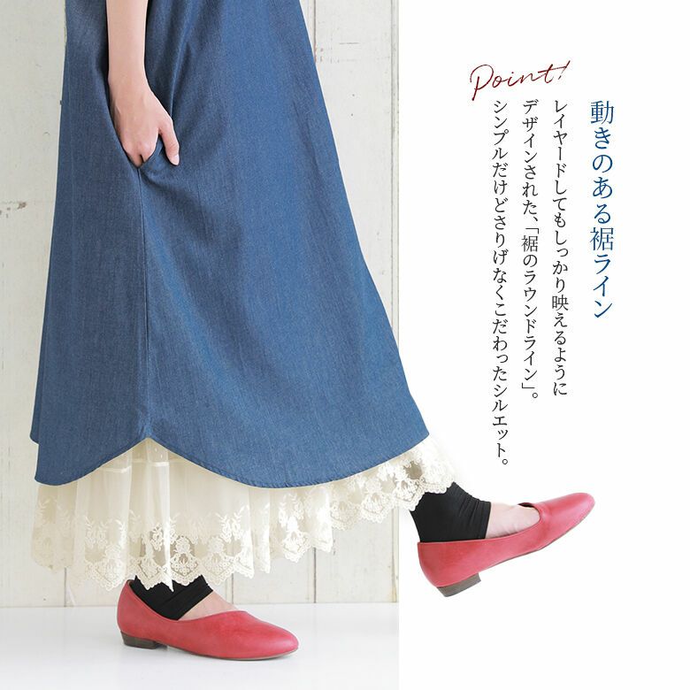cotton100%の心地良さ。薄手で柔らかく心地よいダンガリー素材を使用しています。