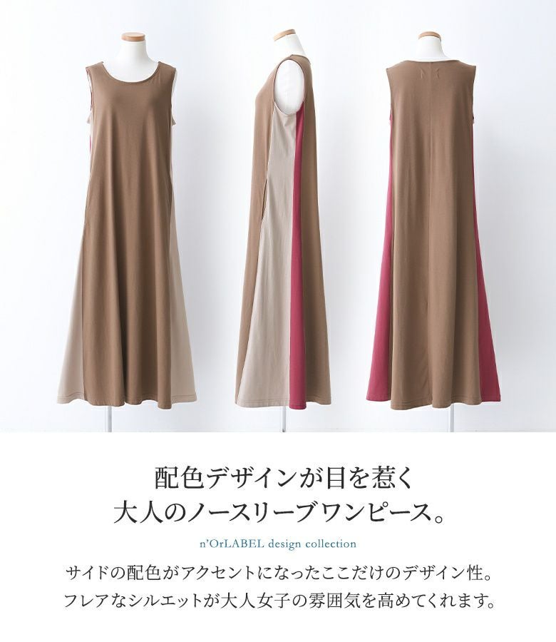 『n'OrLABELサイド配色デザインノースリーブワンピース』