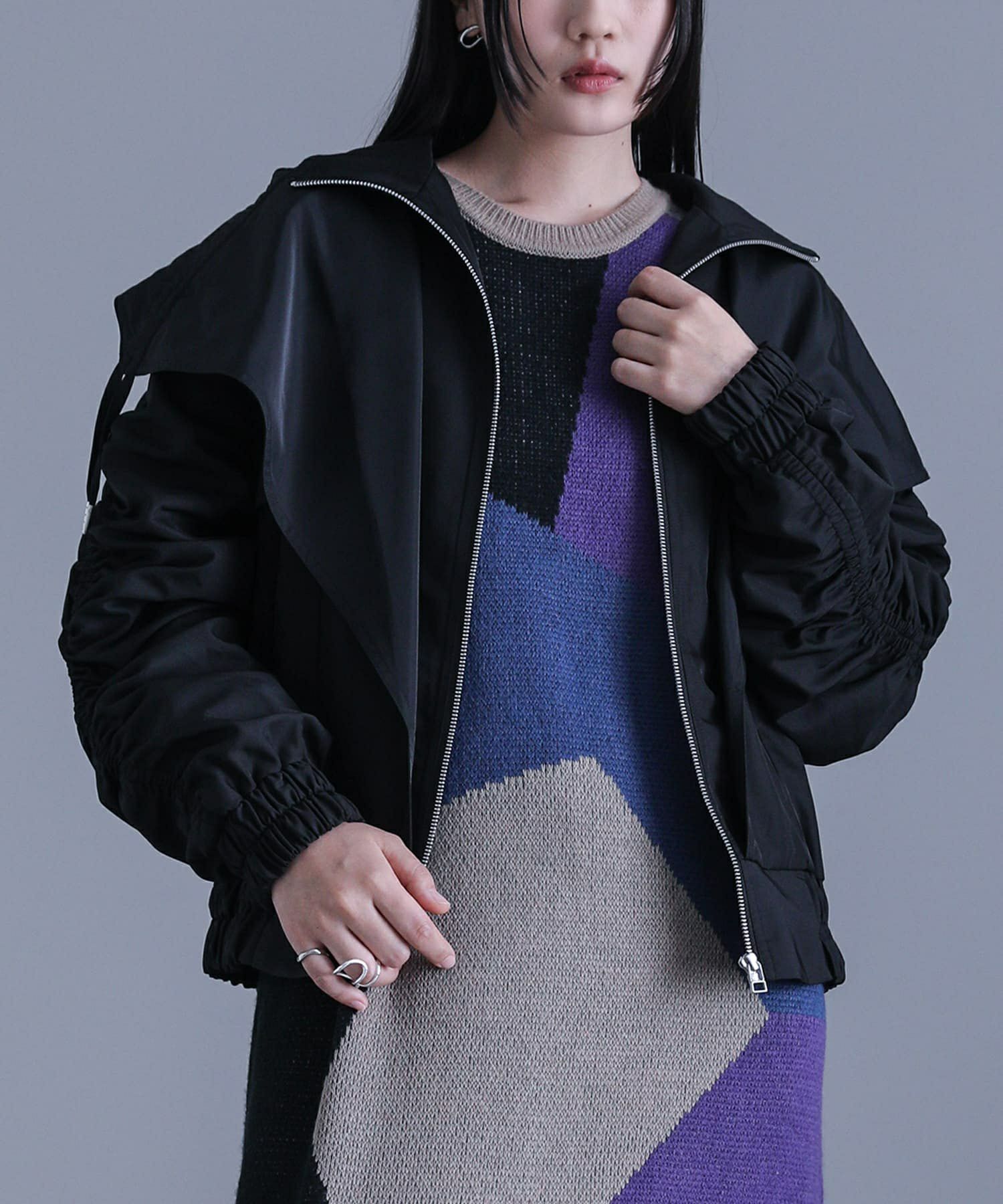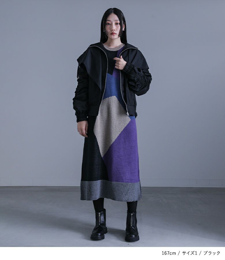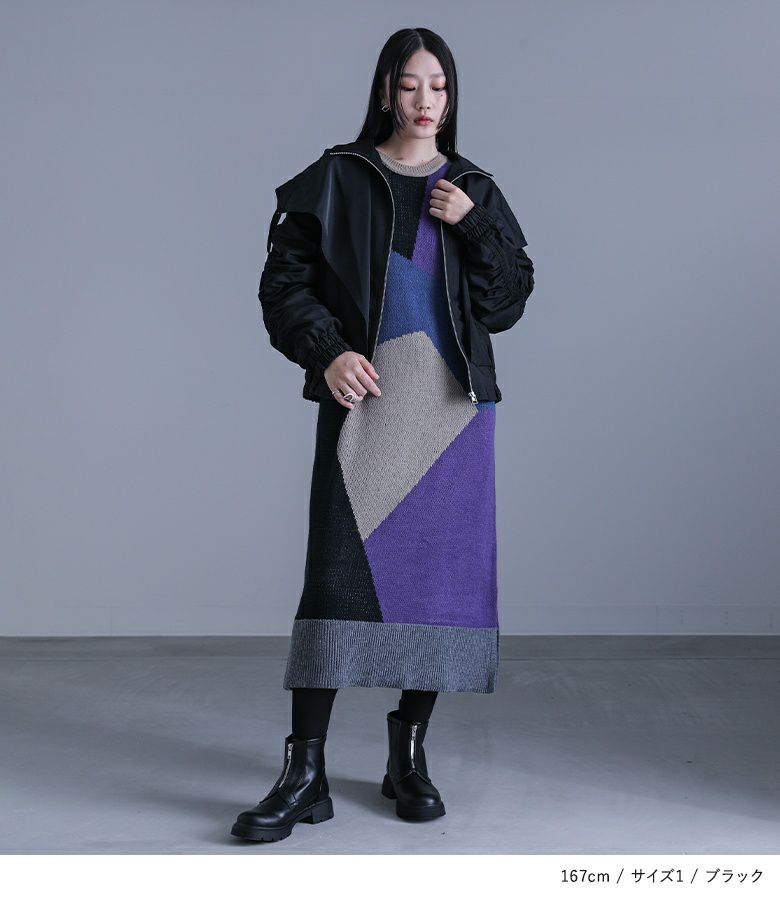 【2】 袖丈:指先が少し見える位 着丈:ヒップ下少し見える位 腕周り:ゆったり バスト:ゆったり 全体:ゆったり