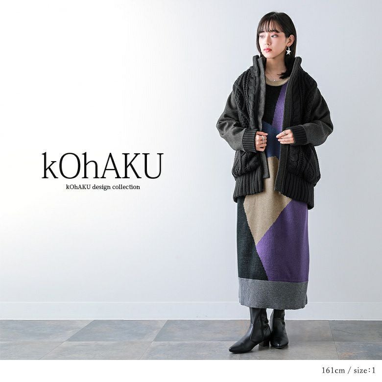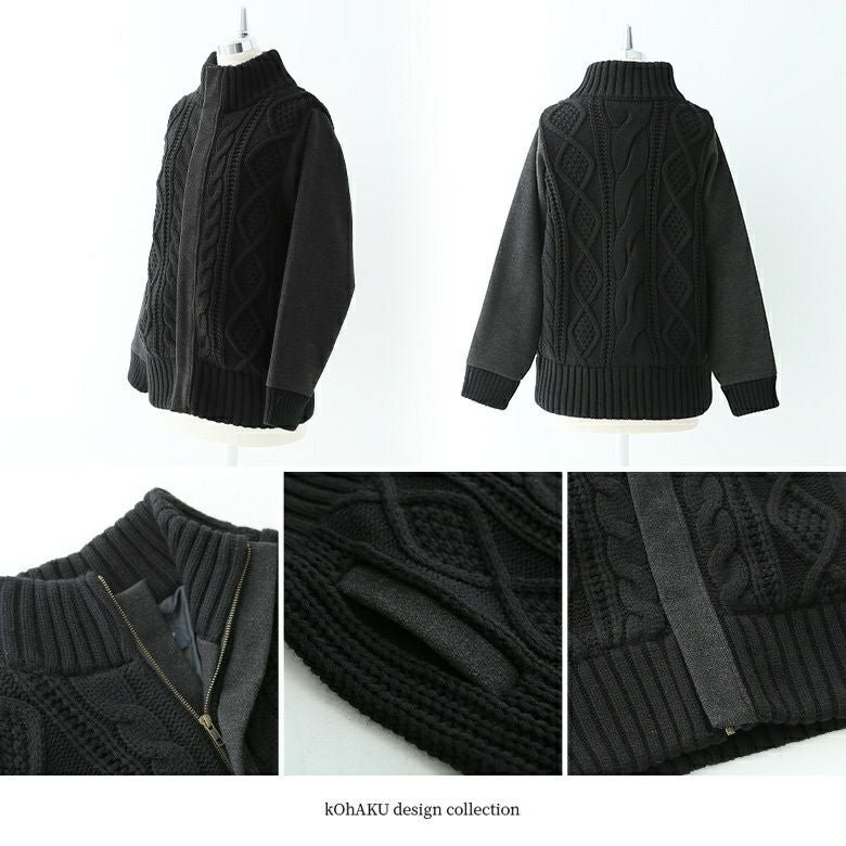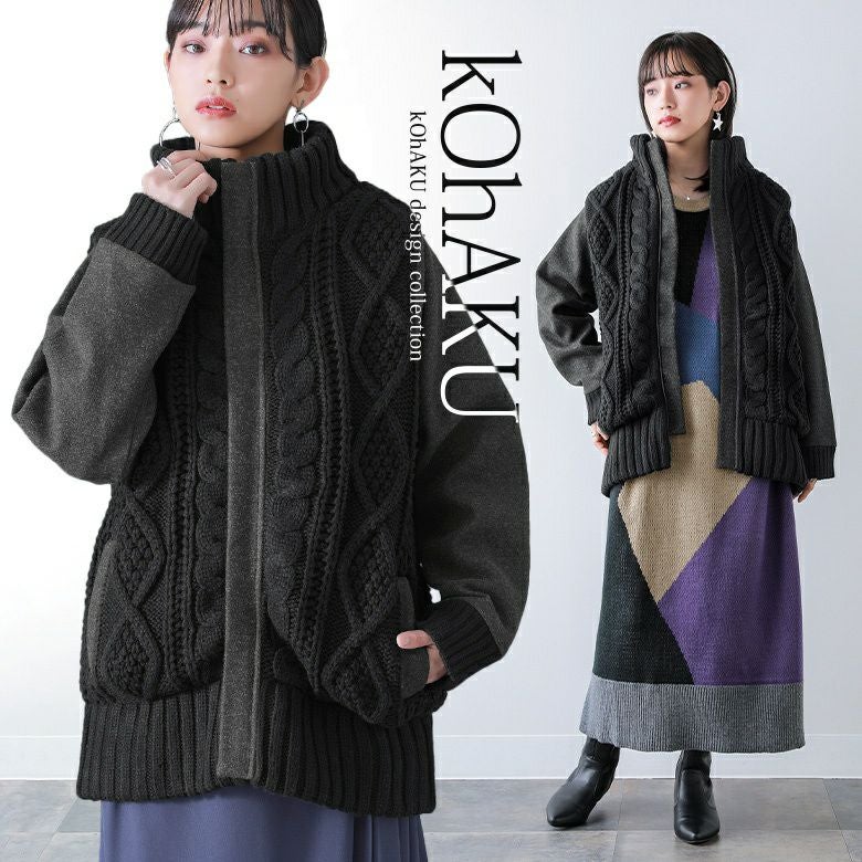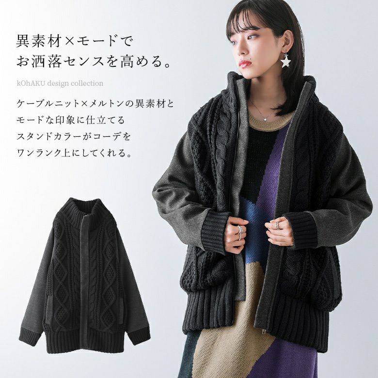 ゆるっとラフにお洒落センスを高める≪kOhAKU≫異素材×ケーブルニットスタジャンです。
