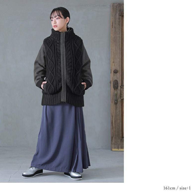 【送料無料】『kOhAKU異素材×ケーブルニットスタジャン』