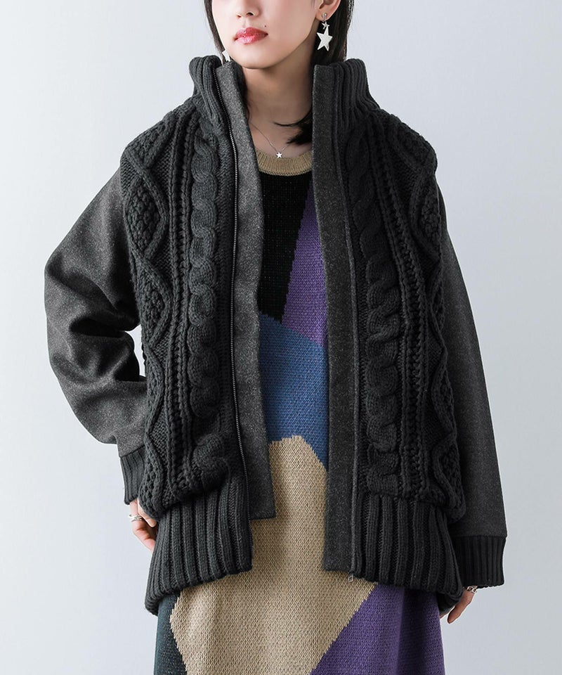 5. 【送料無料】『kOhAKU異素材×ケーブルニットスタジャン』【メール便不可】