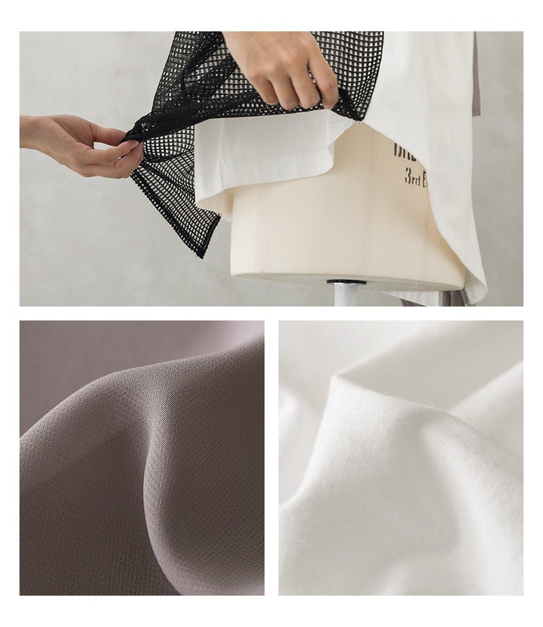 カットソーはコットン100%生地を使用。シフォン生地は透け感のあるさらりとした肌触りで、これからの季節にぴったりな軽やかな素材感です。